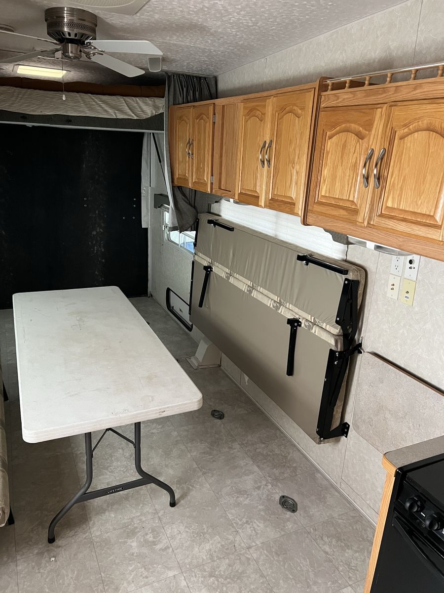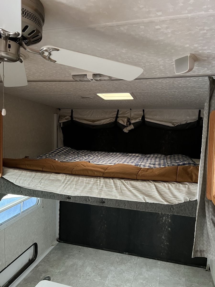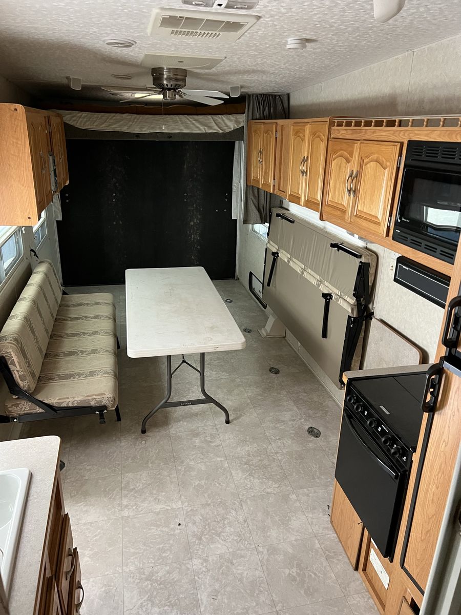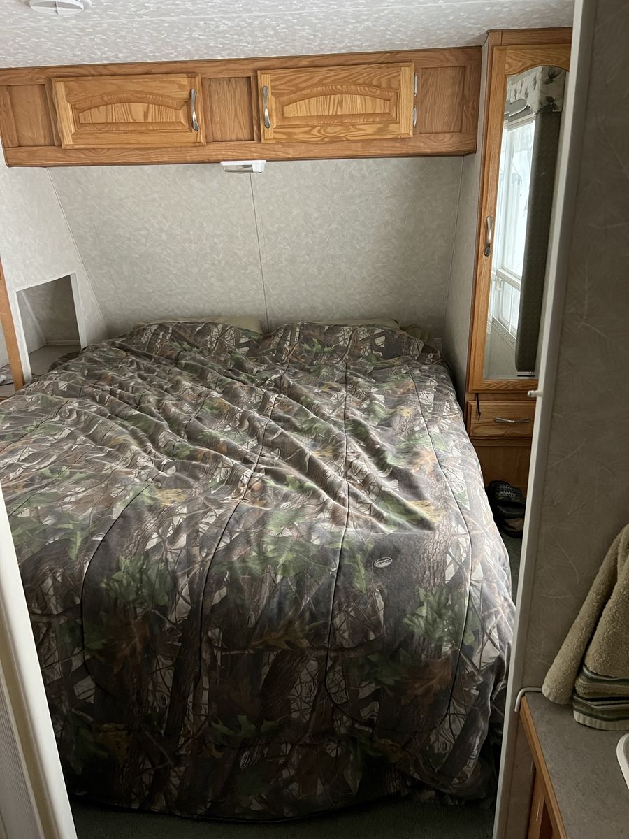 32 feet Interior in really good condition. Lots of storage and atv cargo space. Sleeping space for six+ Pull down bunk, convertible benches. Brand new awning and cover Everything works. Furnace, a/c, microwave, refrigerator, water heater, generator, oven, stove 5th wheel hitch can be negotiated *truck not included. $11,000.00 or offer Message me with serious inquiries and I’ll send my phone number.