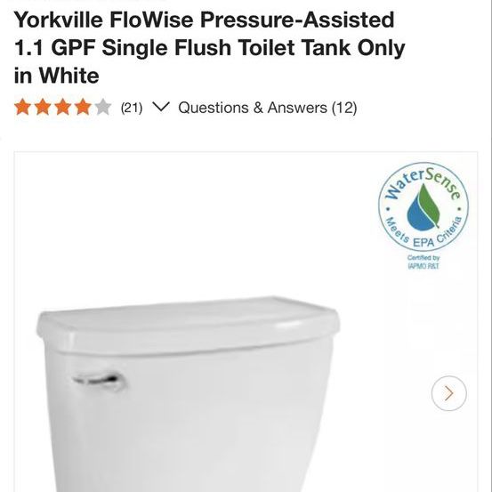 ApplePayBrand new American Standard Yorkville FloWise 1.1 GPF toilet tank (white).