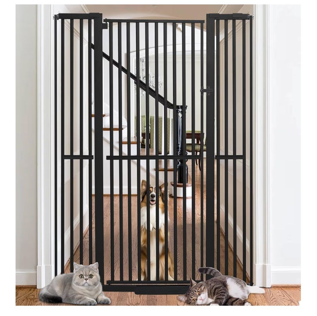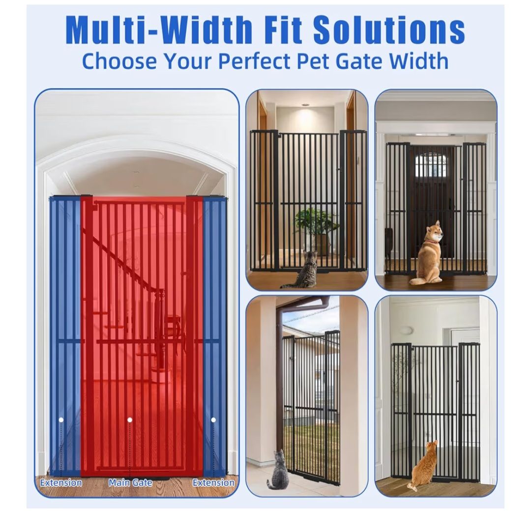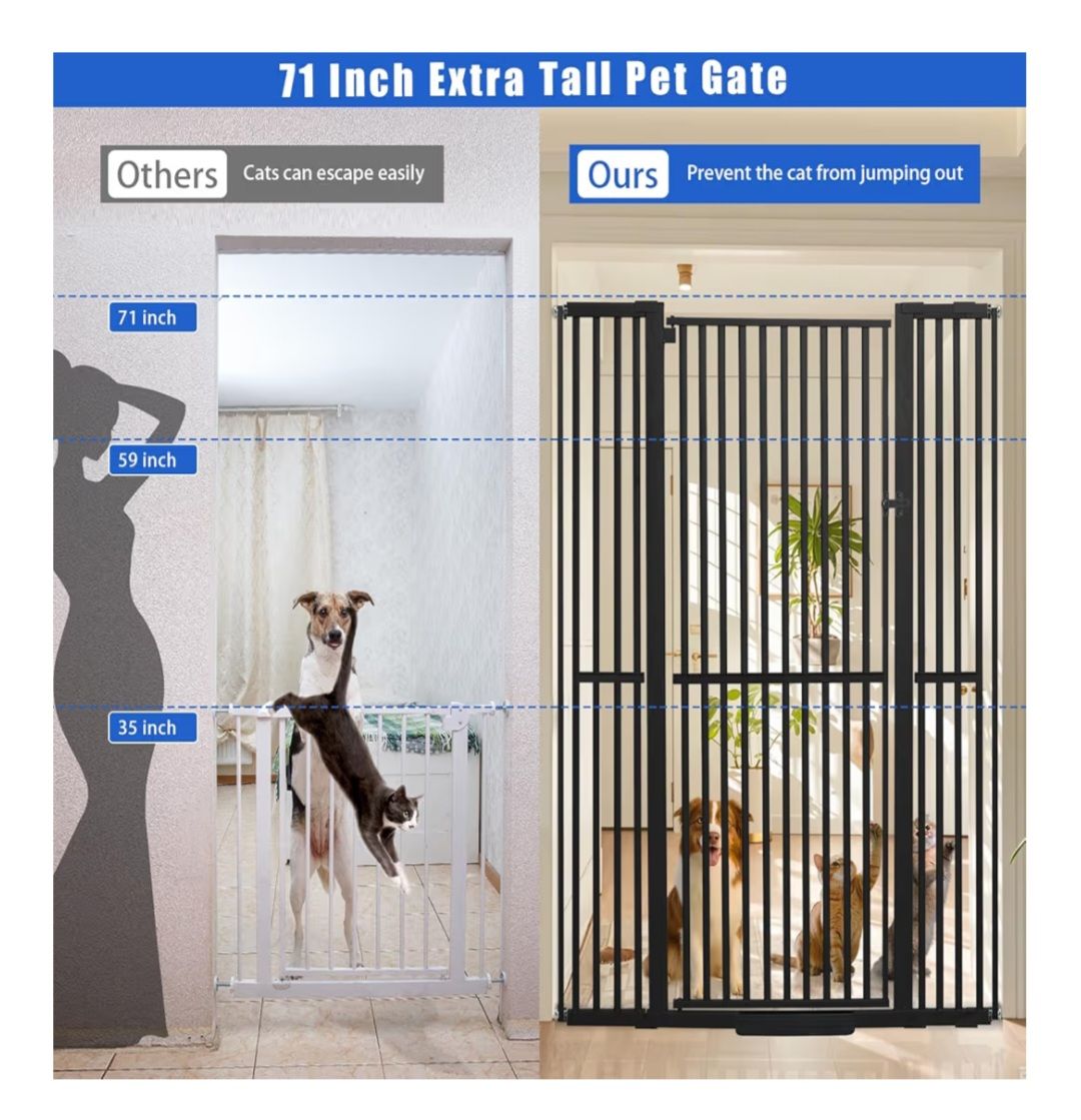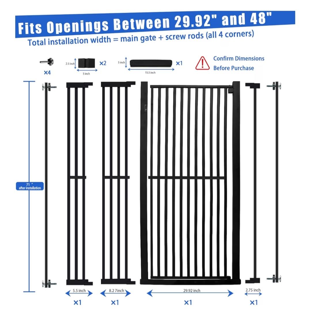 PayPal71" Extra Tall Pet Gate Adjustable 29.5-48" Wide. Excellent used condition, used minimally. Pressure mounted walk through tall gate. This gate includes multiple extension panels to accommodate several widths. Maximum width is 48" wide. Black. Retail $186. Draper.