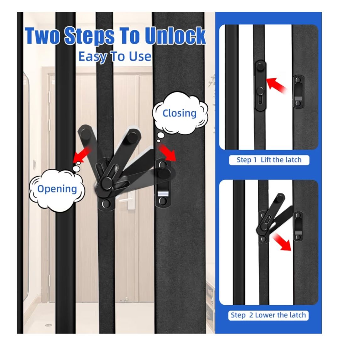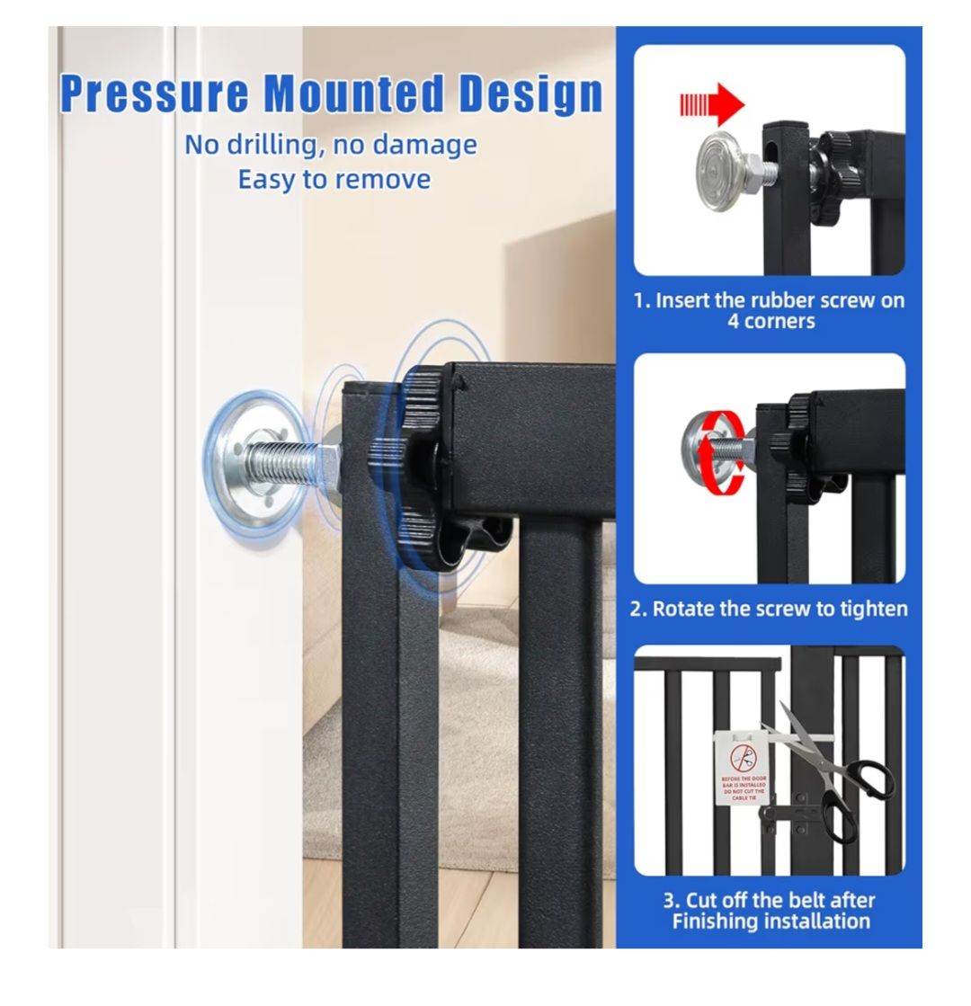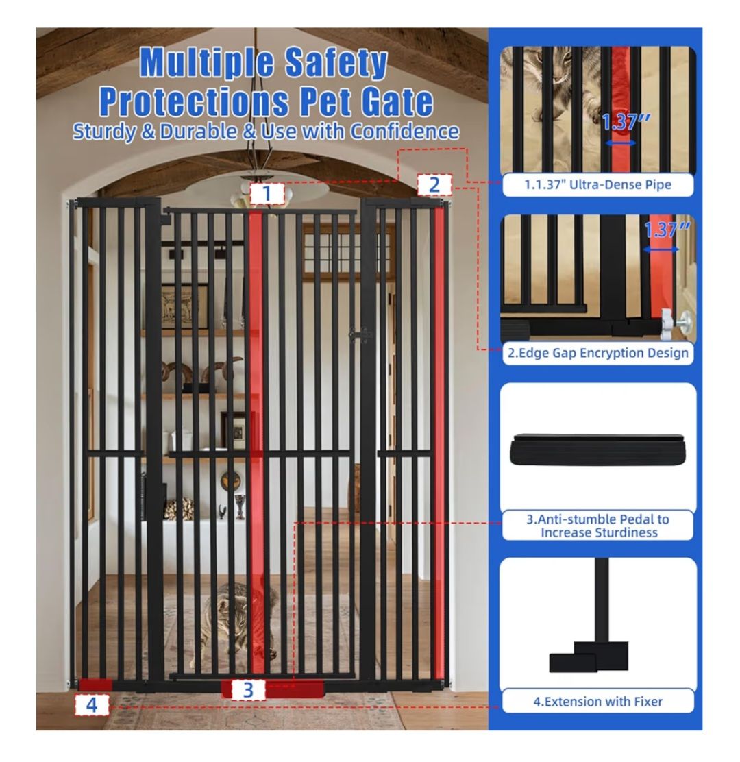 PayPal71" Extra Tall Pet Gate Adjustable 29.5-48" Wide. Excellent used condition, used minimally. Pressure mounted walk through tall gate. This gate includes multiple extension panels to accommodate several widths. Maximum width is 48" wide. Black. Retail $186. Draper.