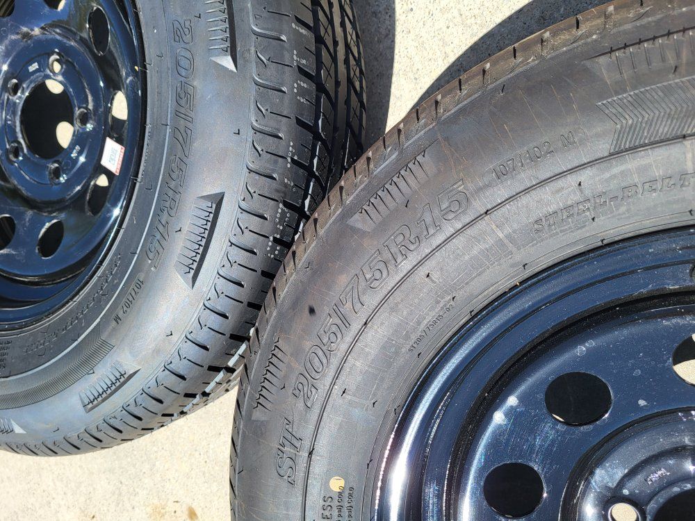 RAINIER tires 8 ply ST205/75R15 15 inch tires. 5x4.5 rims Cash or venmo