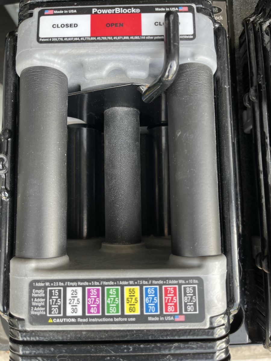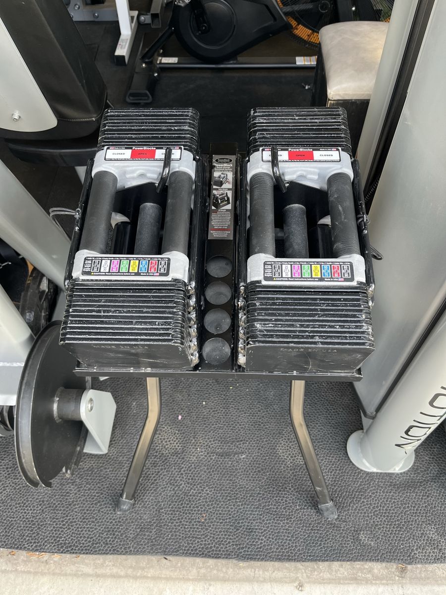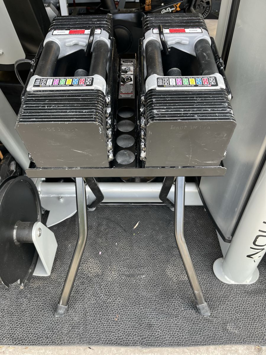 Commercial adjustable dumbbells in great condition and in perfect working order each dumbbell can be adjusted from 5 to 70 pounds in 2 1/2 pound increments and comes with stand. Knew this set with the stand cost over $700 selling for $480 firm. These dumbbells also can be expanded to 90 pounds.