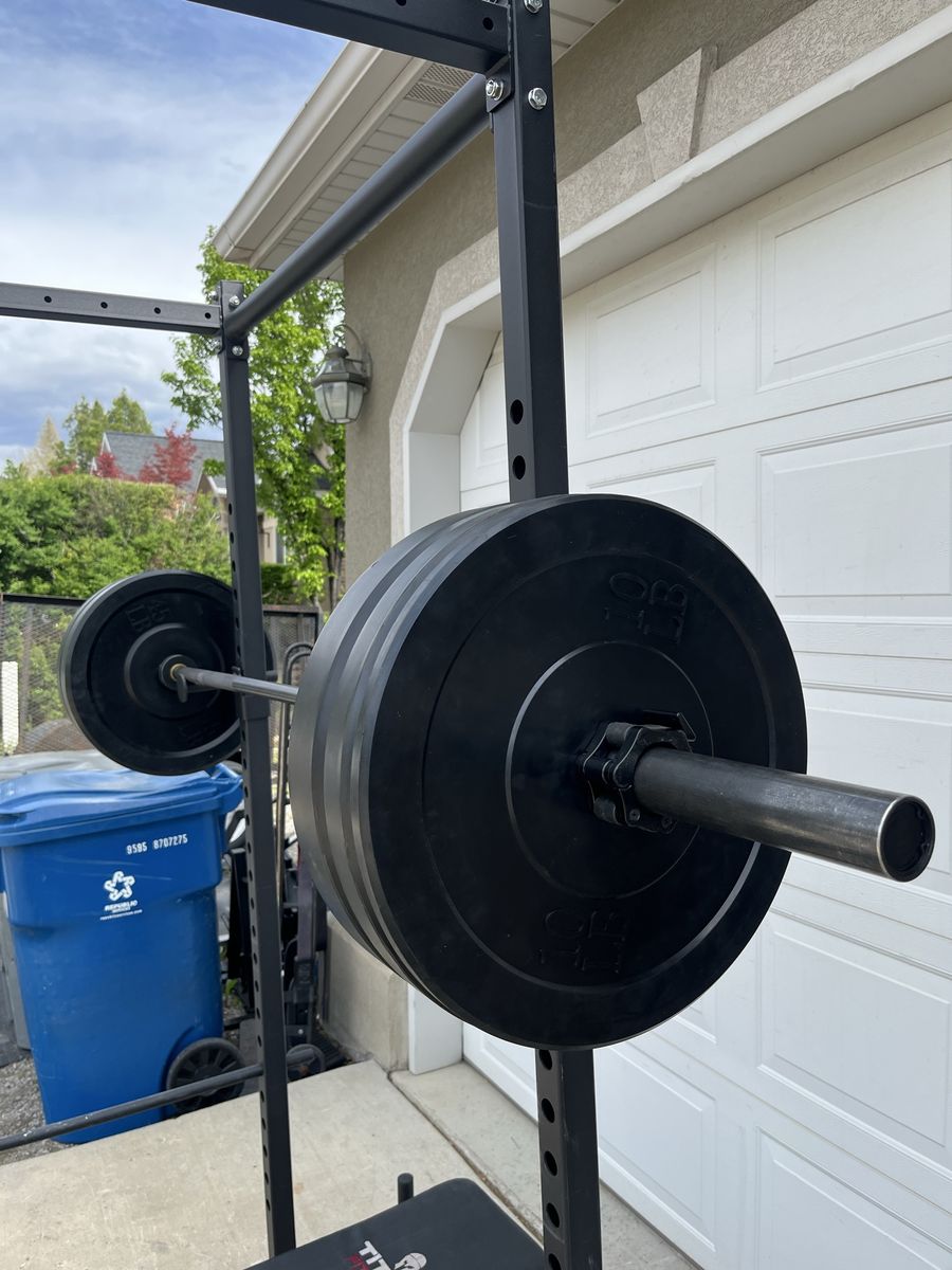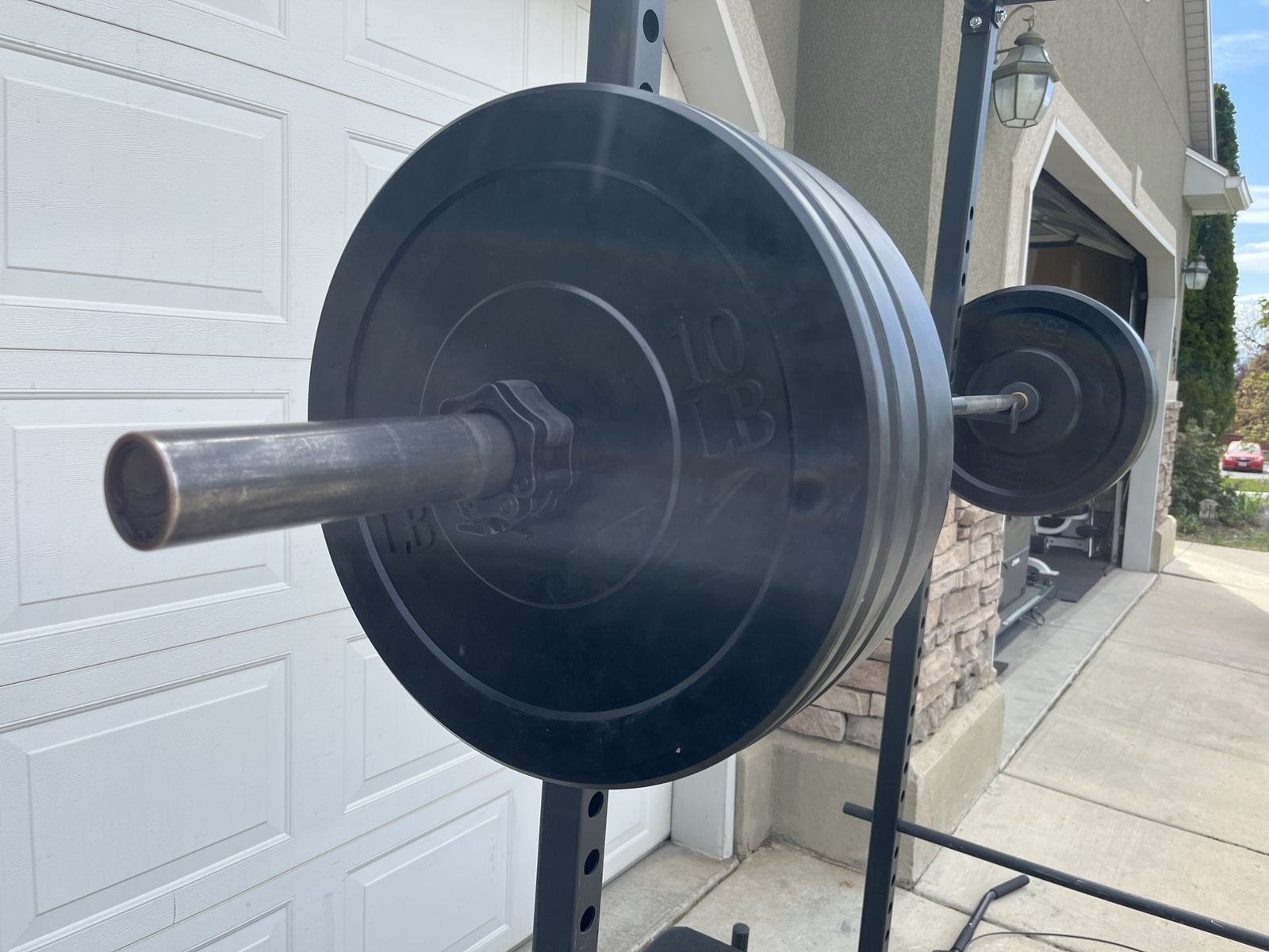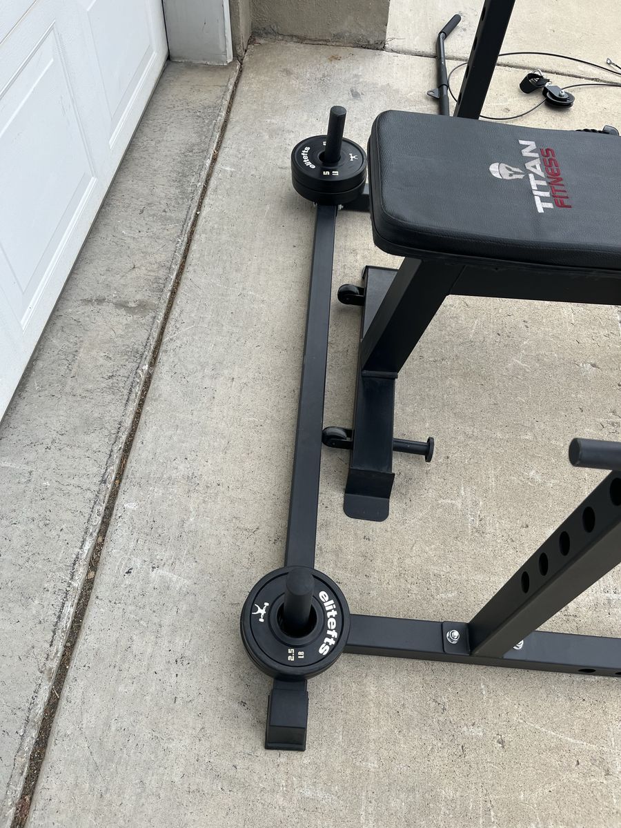 Complete Olympic home gym set up in new condition, comes with a Wasatch barbell Olympic power rack and weight set and adjustable TITAN bench. Also included is a pulley system with attachments. selling everything altogether for $680 firm and will not separate. With free local Curbside delivery