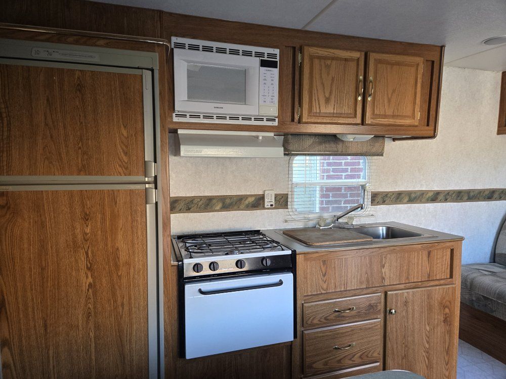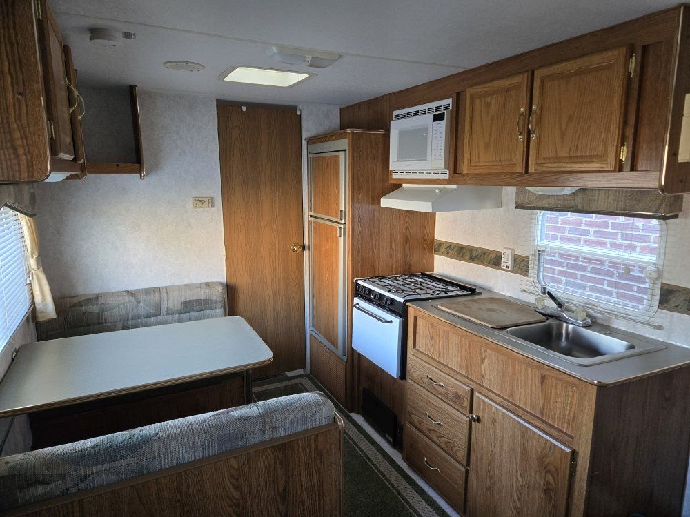 Everything in good working condition. Sleeps 5 Air conditioning and heating. Microwave, bathtub, awning. Two propane tanks. Lots of storage space. Tires two years old. Equalizer hitch included. Come see to appreciate. Comes fully furnished with dishes, utensils, pots and pans. Sheets and towels and much more.