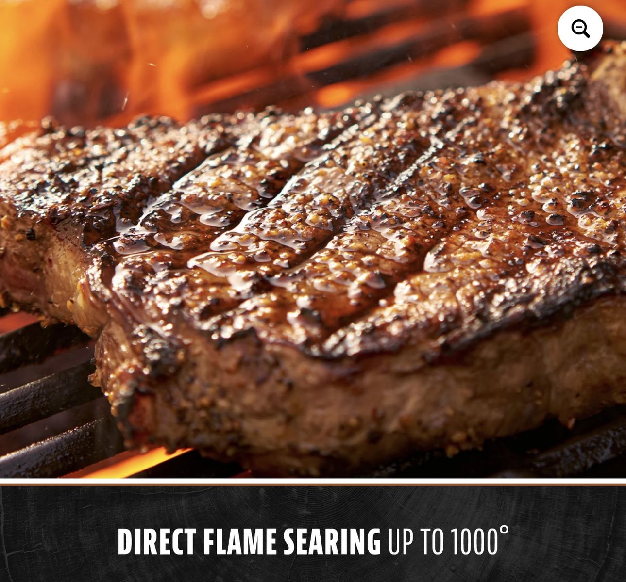Direct Searing: Includes an adjustable Flame Broiler for direct flame searing, reaching temperatures up to 1,000°F.