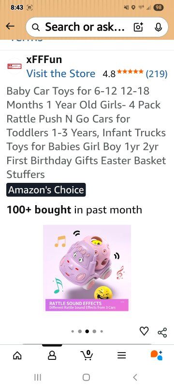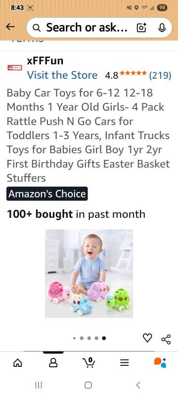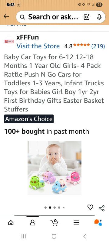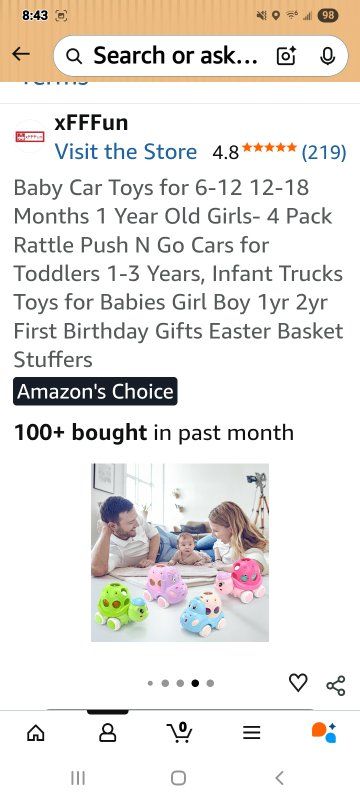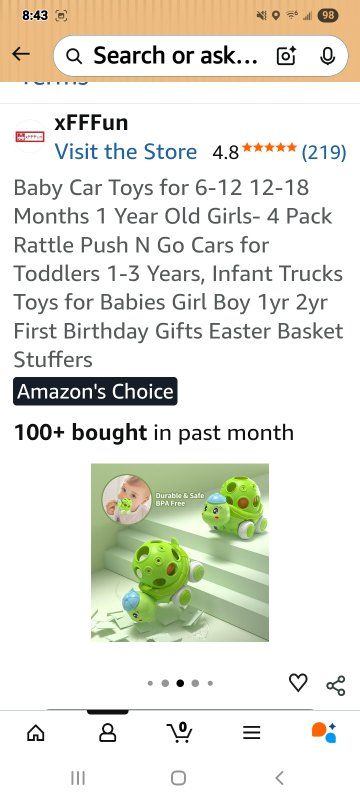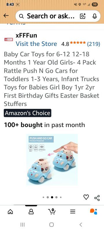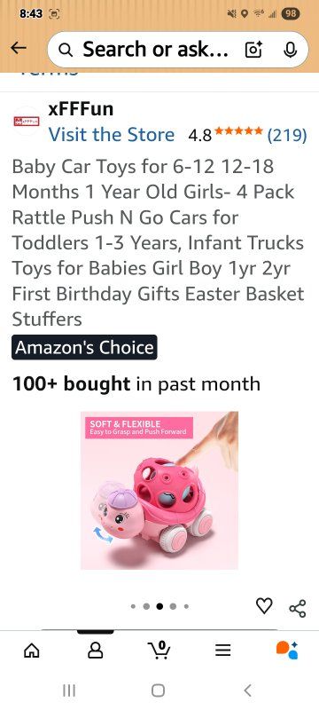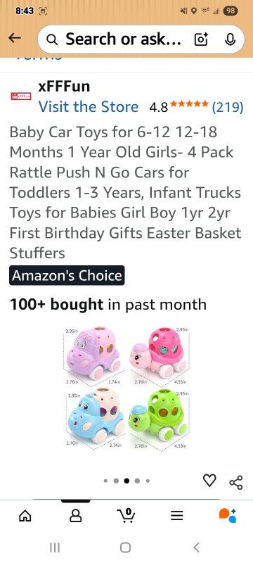 Color Baby Toy Car: 4 PCS cute rattle baby cars of pink turtle car, green turtle car, blue truck, and purple crane. Perfect as baby girl toys 6-12-18 months 1 year old or baby boys gifts, will delight babies at first sight! Sensory Development: Bright colors and rattles sounds stimulate your baby's senses. The infant car toys are easy to grasp and fun to shake. Developmental car toys for babies 6-18 months and toddlers 1-3. Push and Go Car: Our friction-powered toys car move quickly across the floor with just a slight push, encouraging crawling and enhancing motor skills. Durable & Safe: Made with high-quality soft rubber and featuring a rounded design to protect little hands. The easy-grip holes in soft rubber are perfectly sized for small fingers, making these ideal first car toys for babies 6 7 8 9 10 11 12 months old and toddlers 1 2 3 years old . Perfect Gift for Babies: Nice gift package, perfect for baby girls and boys 1st 2nd birthday gift, Christmas gift, Easter Gifts and Valentines day gifts Toddler Car Toys for Travel: our 4 inch small toy cars is ideal for little hands, and easy to take anywhere.