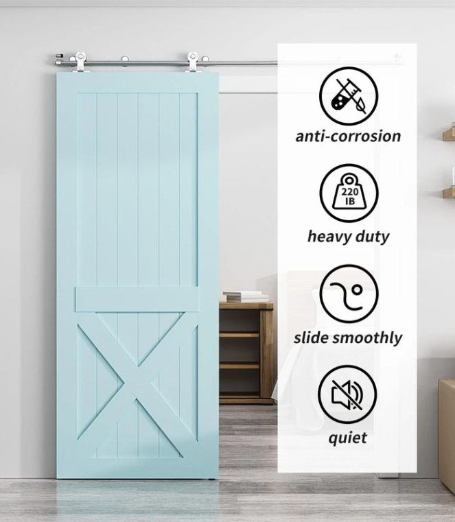 AONAYIOA 8 FT Top Mount Sliding Barn Door Hardware Kit, Stainless Steel Barn Door Hardware Track and Kit, Heavy Duty Sturdy Barn Door Hardware Kit for Single Door(T Shaped)