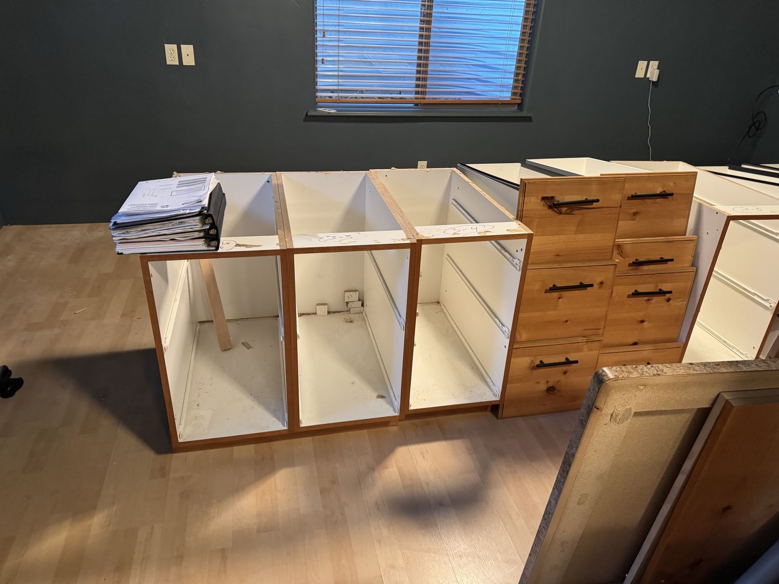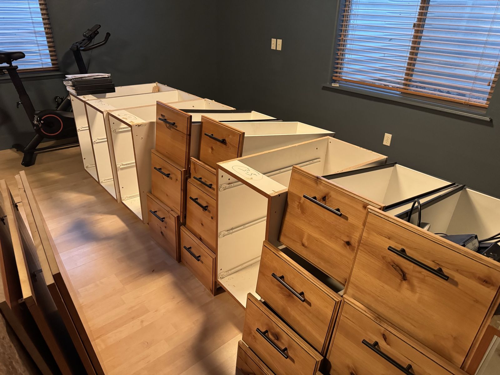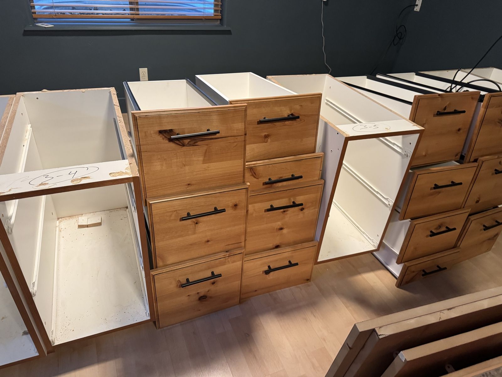 VenmoBuilt in desk drawers and tops - knotty alder 4 - 2 drawer 2 - 3 drawer Can be configured however you would like. Boxes and drawers are all in good shape.