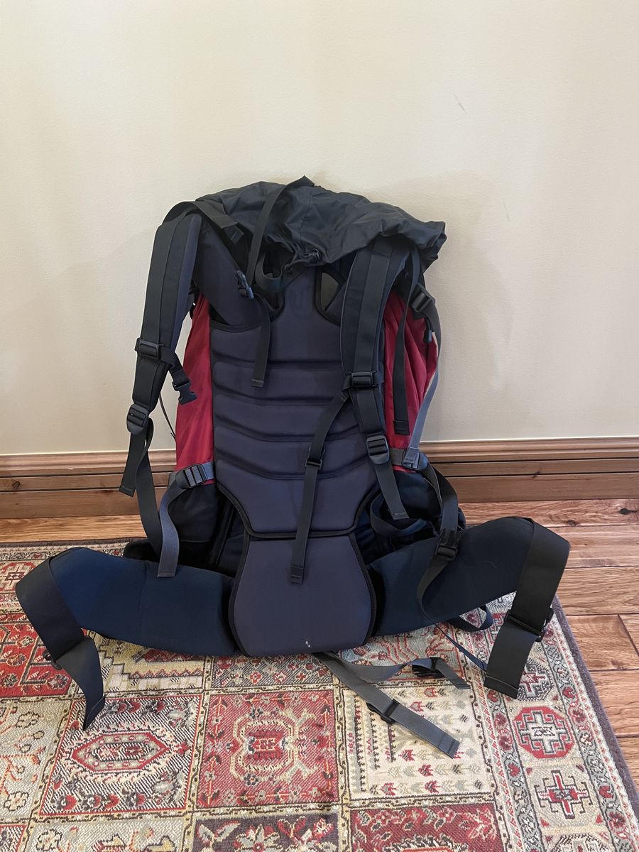 Venmohe Arc'teryx Bora 65 Vintage Backpack in red and black is a versatile and durable backpack designed for hiking and camping adventures. This 65L backpack features a sleek roll-top design, adjustable size, and a variety of compartments and pockets for organization. Made with water-resistant materials. The Arc'teryx Bora 65 is a reliable choice for outdoor enthusiasts looking for a high-quality backpack for their next adventure.