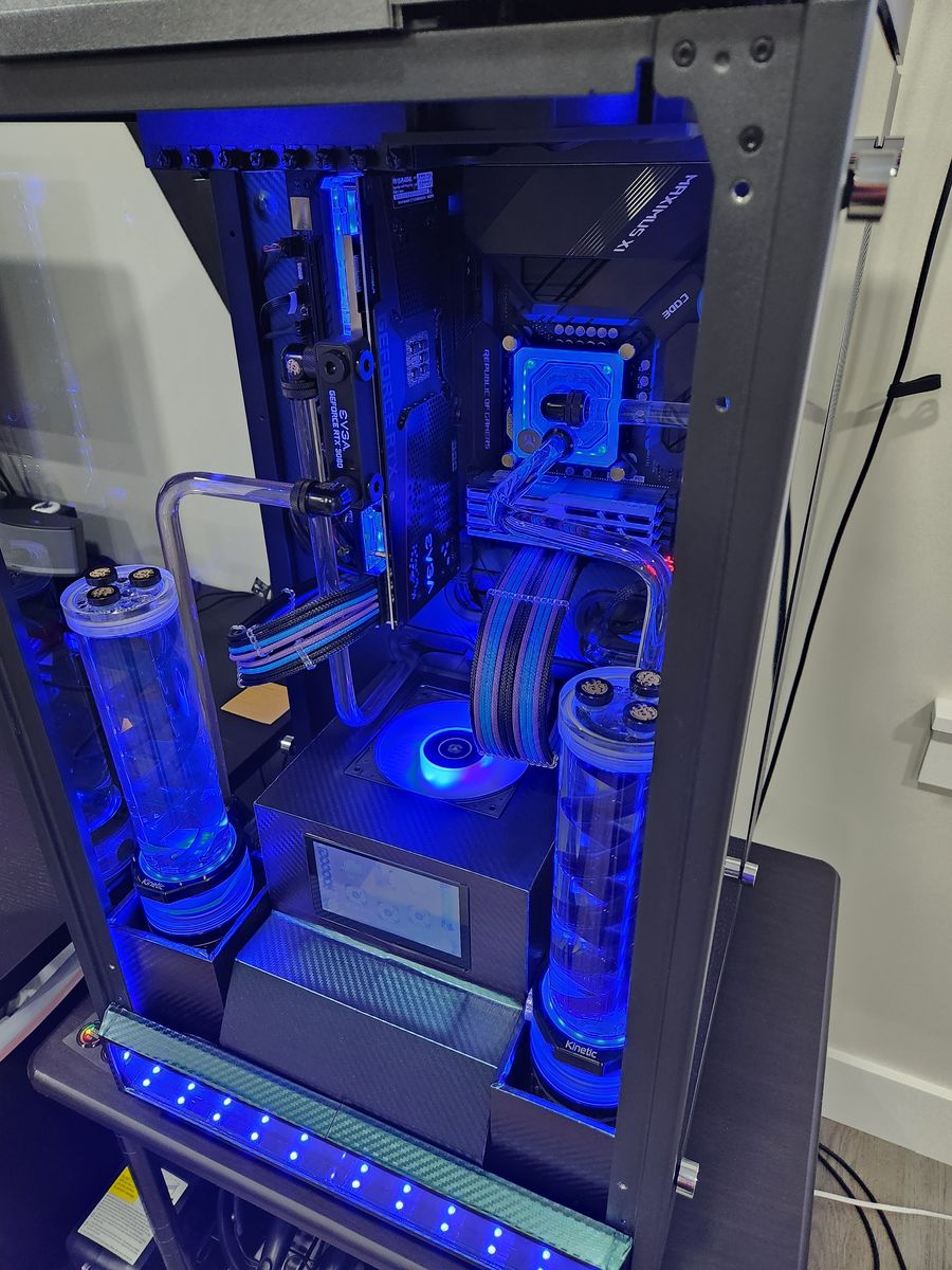 Featured build on PCPARTPICKER!! Custom design dual loop water cooled gaming computer. Intel i7-8700K, 32GB RAM, EVGA RTX 3080 12GB, Samsung 970 Evo Plus 2 TB NVME SSD (M.2), 5 TB internal 3.5” HDD, Thermaltake Tower 900 case, Asus ROG Maximus XI Code motherboard, tons of RGB.