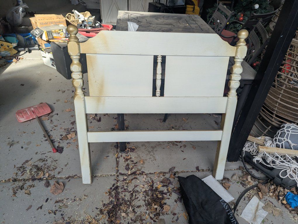 twin wood headboard. my daughter painted it gold. can be sanded and repainted.