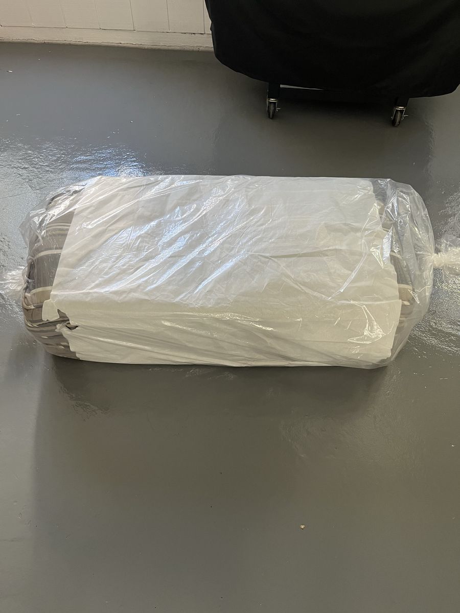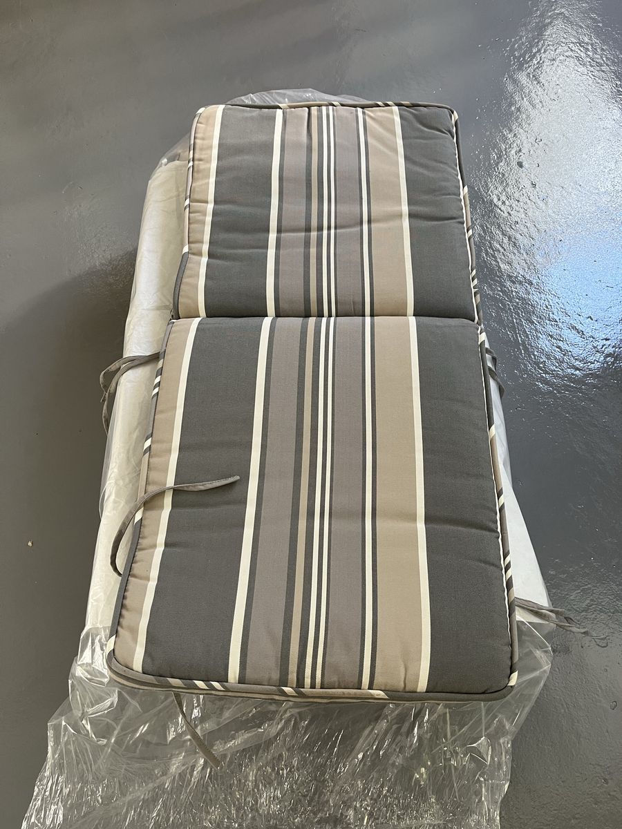 4 patio chair cushions, they have just been professionally cleaned by red hanger. They are still in the package from the cleaners very good condition with no fading cash only pick up only.