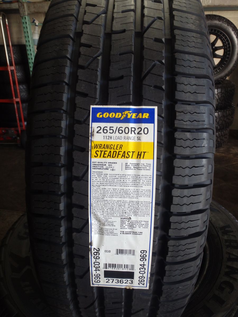 J&J TIRES & WHEELS SET OF BRAND NEW TIRES 265/60R20 GOODYEAR WRANGLER STEADFAST HT FOR ONLY $799 THESE IS A GREAT TIRES FOR ANY WEATHER CONDITIONS, WE WILL INSTALL THEM FOR AN ADDITIONAL $20.00 PER TIRE INSTALLATION INCLUDES MOUNTING,BALANCING,VALVE STEAM AND TIRES DISPOSAL FEE,CALL FOR ANY QUESTIONS AT JOSE OR ROBERTO 801-878-4556 801-410-4460 OR VISIT US,WE'RE OPEN MONDAY TO SATURDAY FROM 9:00 AM TO 6:00 PM..WE HAVE A LOT'S A MORE AN NEW TIRES AND WHEELS CALL US IF YOU ARE LOOKING FOR A DIFFERENT SIZE....
