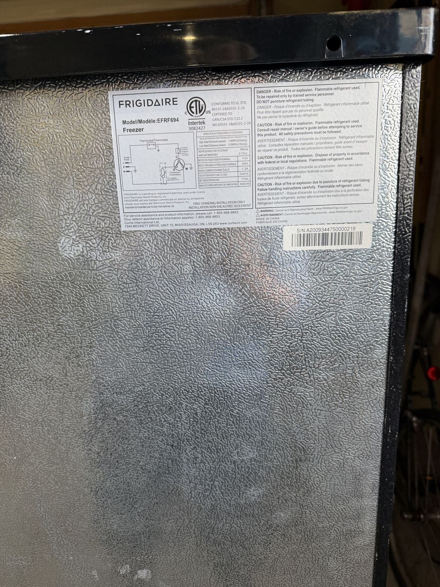 VenmoFrigidaire Upright Freezer Manual defrost Model EFRF694 6.5 Cu. Ft. Dimensions: H 55.91 in, W 21.26 in, D 22.24 in Freezer works great and maintains a steady temperature. I just got a larger one since I have more space.