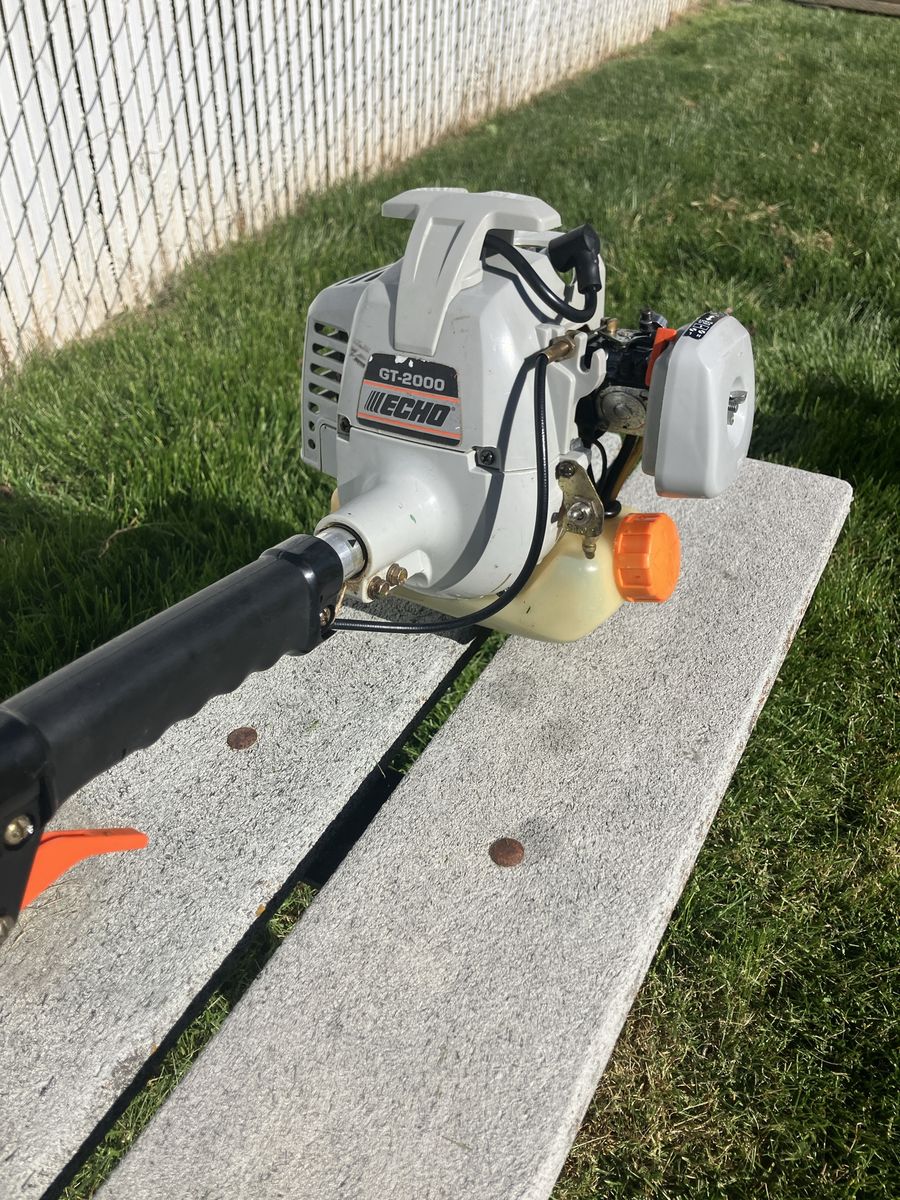 For sale Echo GT-2000 gas weed eater/string trimmer. This machine runs very well and has plenty of power. It is super easy to start and is very light weight. This machine has a bump-feed style head for easily keeping the string at the correct length when it gets short while trimming. Has a full head of string and is ready to work. This machine also has a clutch so the trimmer string can come to a stop when idling Asking $110 obo cash only and text is best. (385) 445 2830