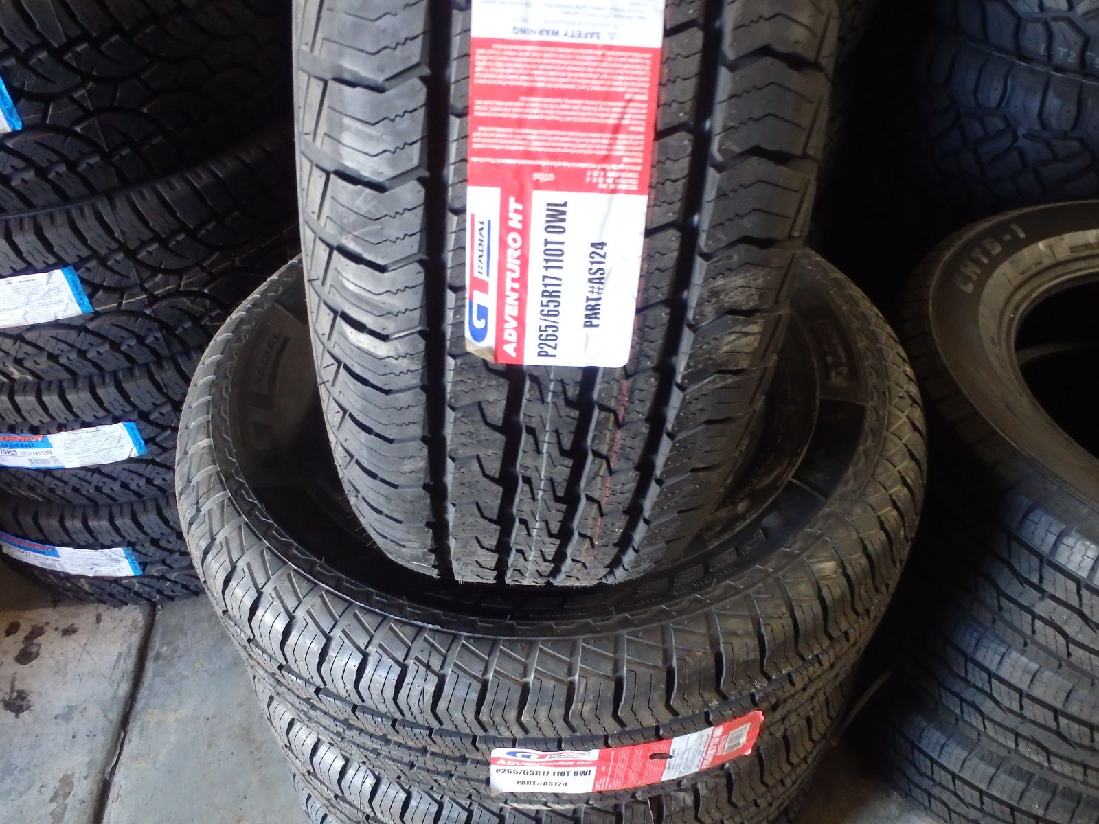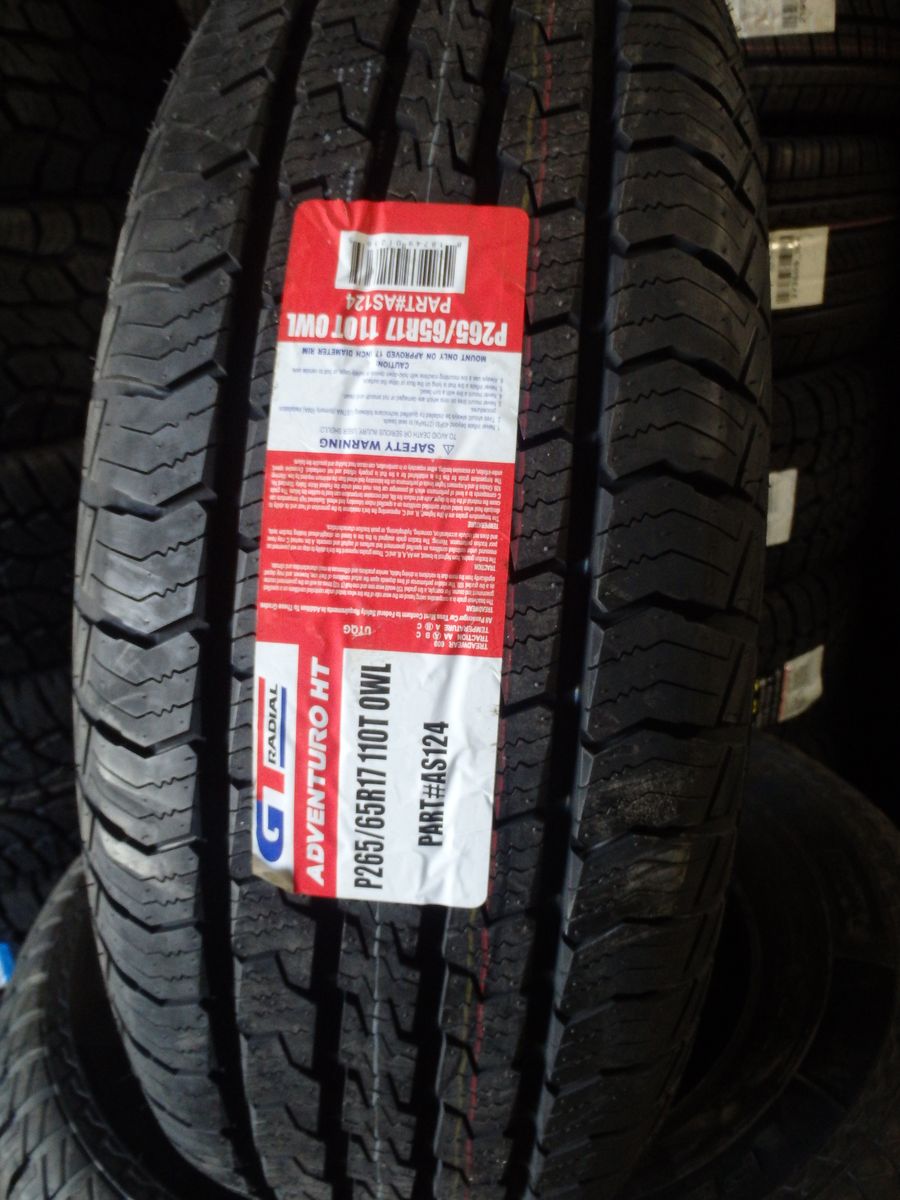 J&J TIRES & WHEELS SET OF BRAND NEW TIRES 265/65R17 GT RADIAL ADVENTURO HT FOR ONLY $399 THESE IS A GREAT TIRES FOR ANY WEATHER CONDITIONS, WE WILL INSTALL THEM FOR AN ADDITIONAL $20.00 PER TIRE INSTALLATION INCLUDES MOUNTING,BALANCING,VALVE STEAM AND TIRES DISPOSAL FEE,CALL FOR ANY QUESTIONS AT JOSE OR ROBERTO 801-878-4556 801-410-4460 OR VISIT US,WE'RE OPEN MONDAY TO SATURDAY FROM 9:00 AM TO 6:00 PM..WE HAVE A LOT'S A MORE AN NEW TIRES AND WHEELS CALL US IF YOU ARE LOOKING FOR A DIFFERENT SIZE....