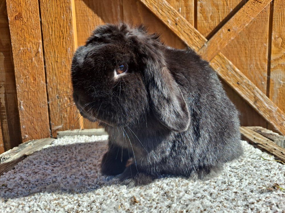 Venmopurebred solid black Doe in letting go from my show breeding program. DOB:3/10/25 She would make an excellent pet or 4h showmanship project. I'm not letting her go with pedigree as I have never been able to successfully breed her, pet home preferred. She has been handled often, and has been around my dogs. She is more playful than just sit around and snuggle, though she is fine to be held. She is not aggressive at all.