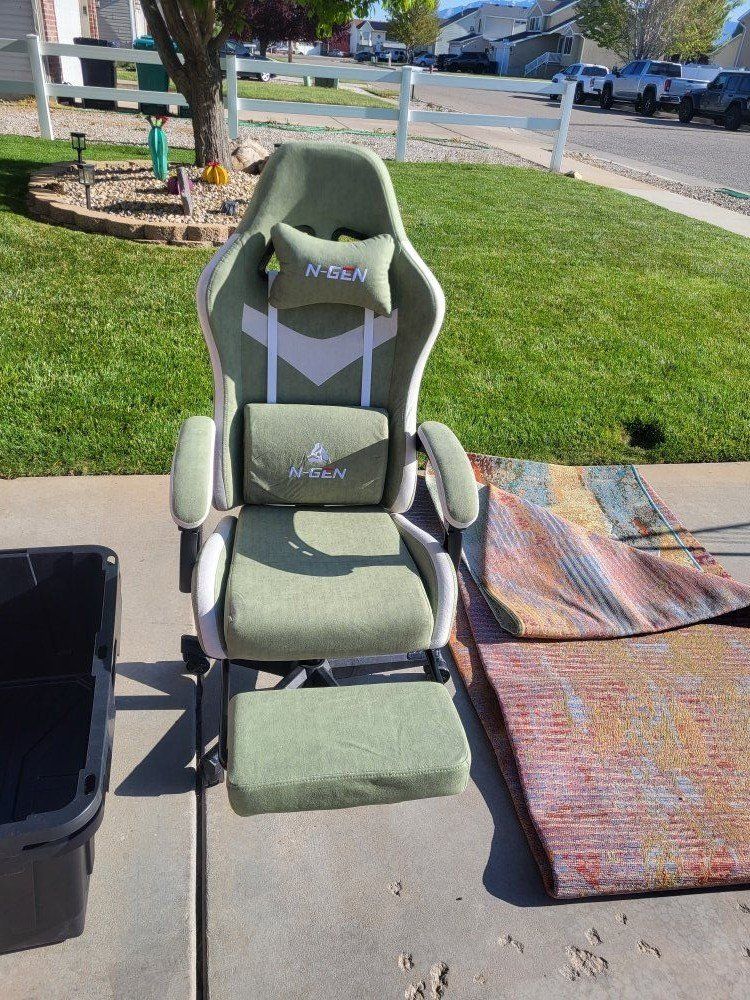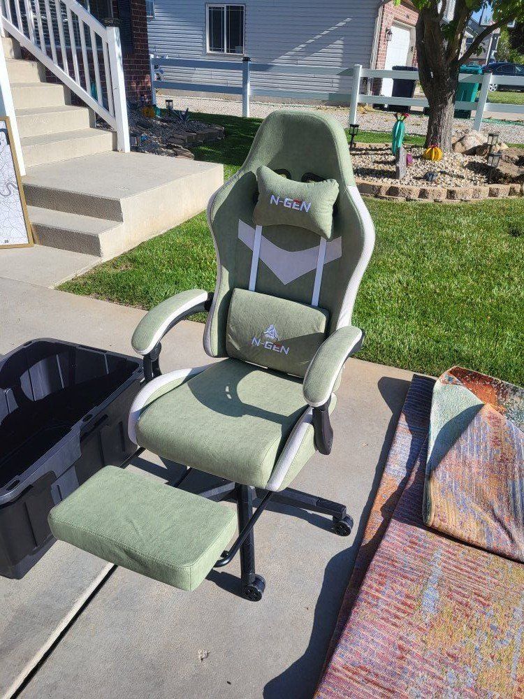 Qty-1 Next Gen. Titan Gaming Chair w/Footrest Green Adjustable Height Lumbar Brand New ***