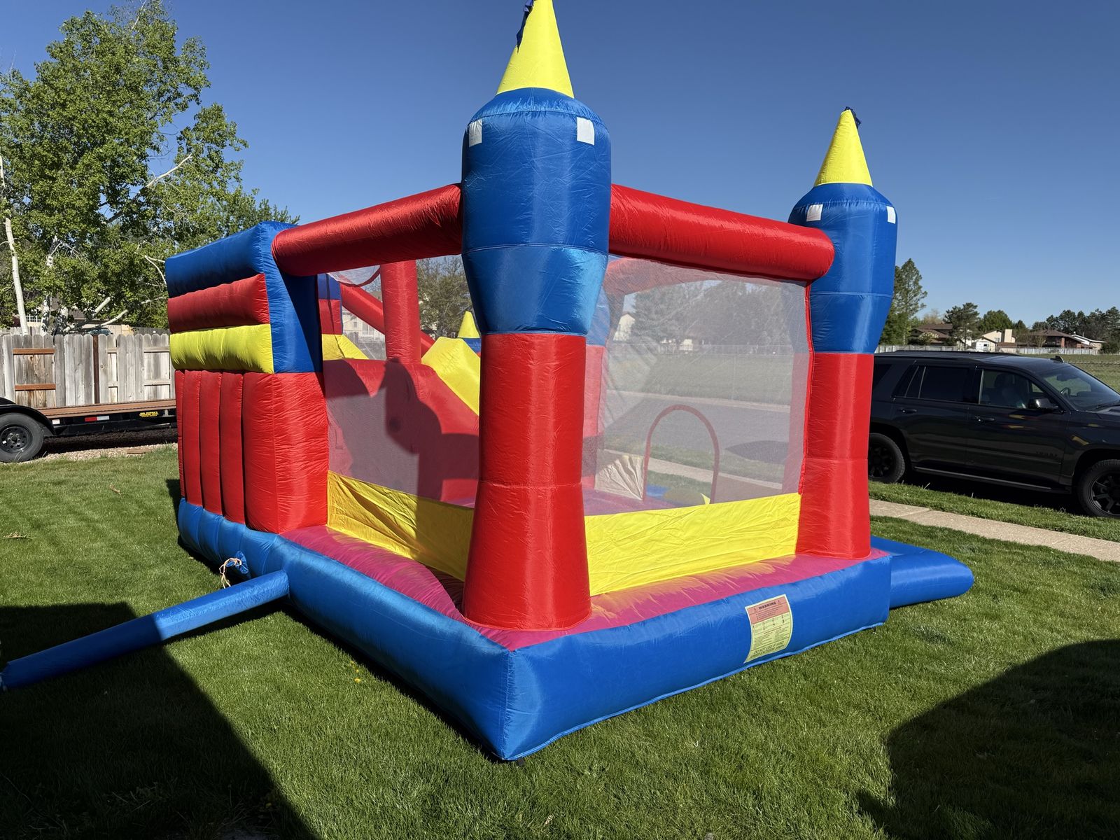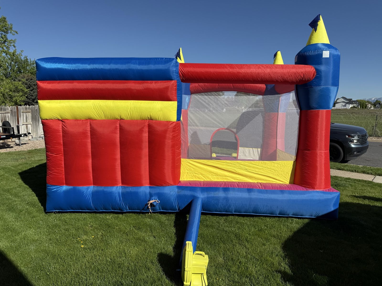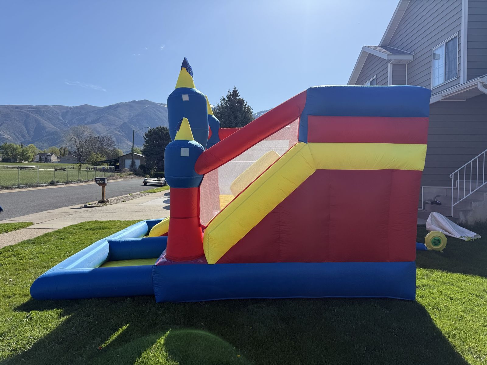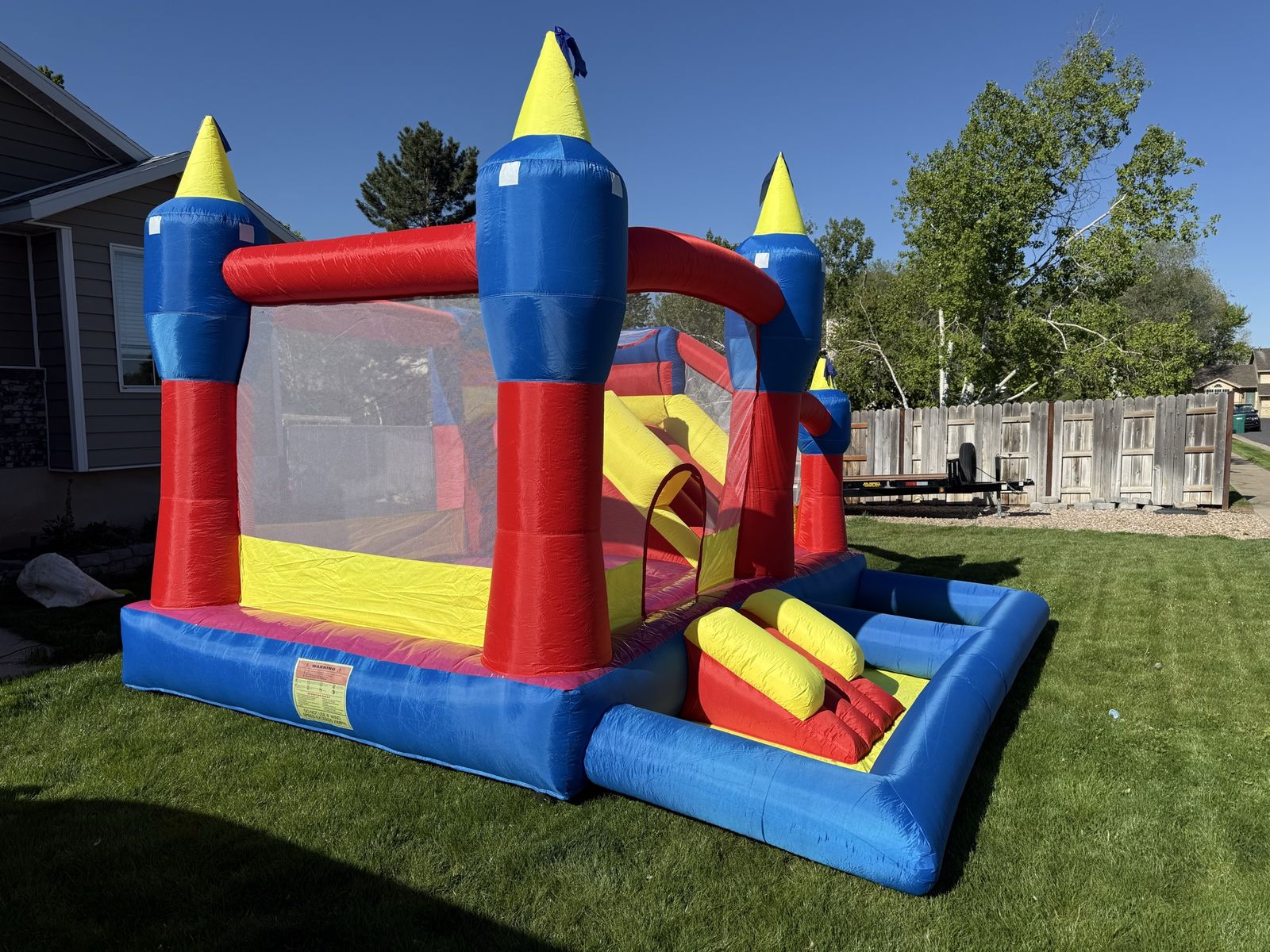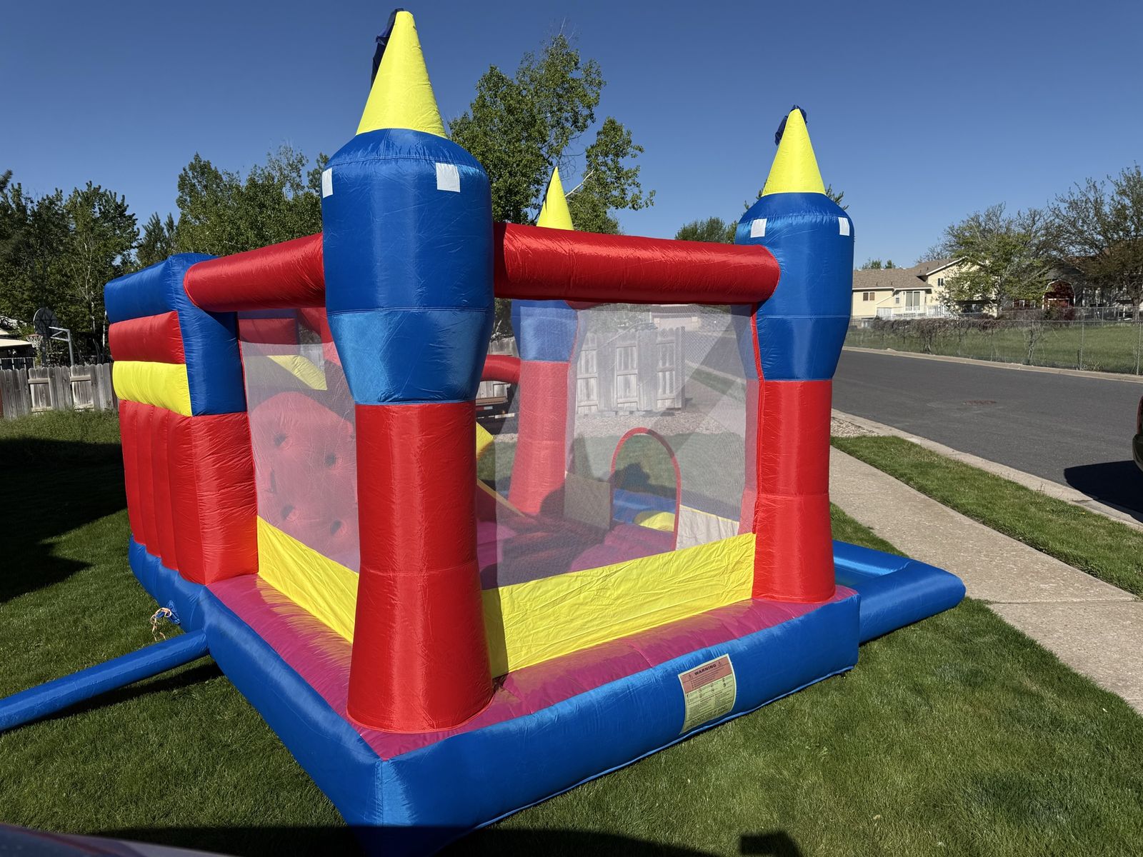 Venmothis is a super fun bounce house for kids between 3 to 10 years old it is 14‘ x 16‘ x 10' WxLxH It has a bounce pad that is 7’ x 8’ and a big slide bought it last year but didn’t get to use it. It is too small for our big kids and too big for a small kids.