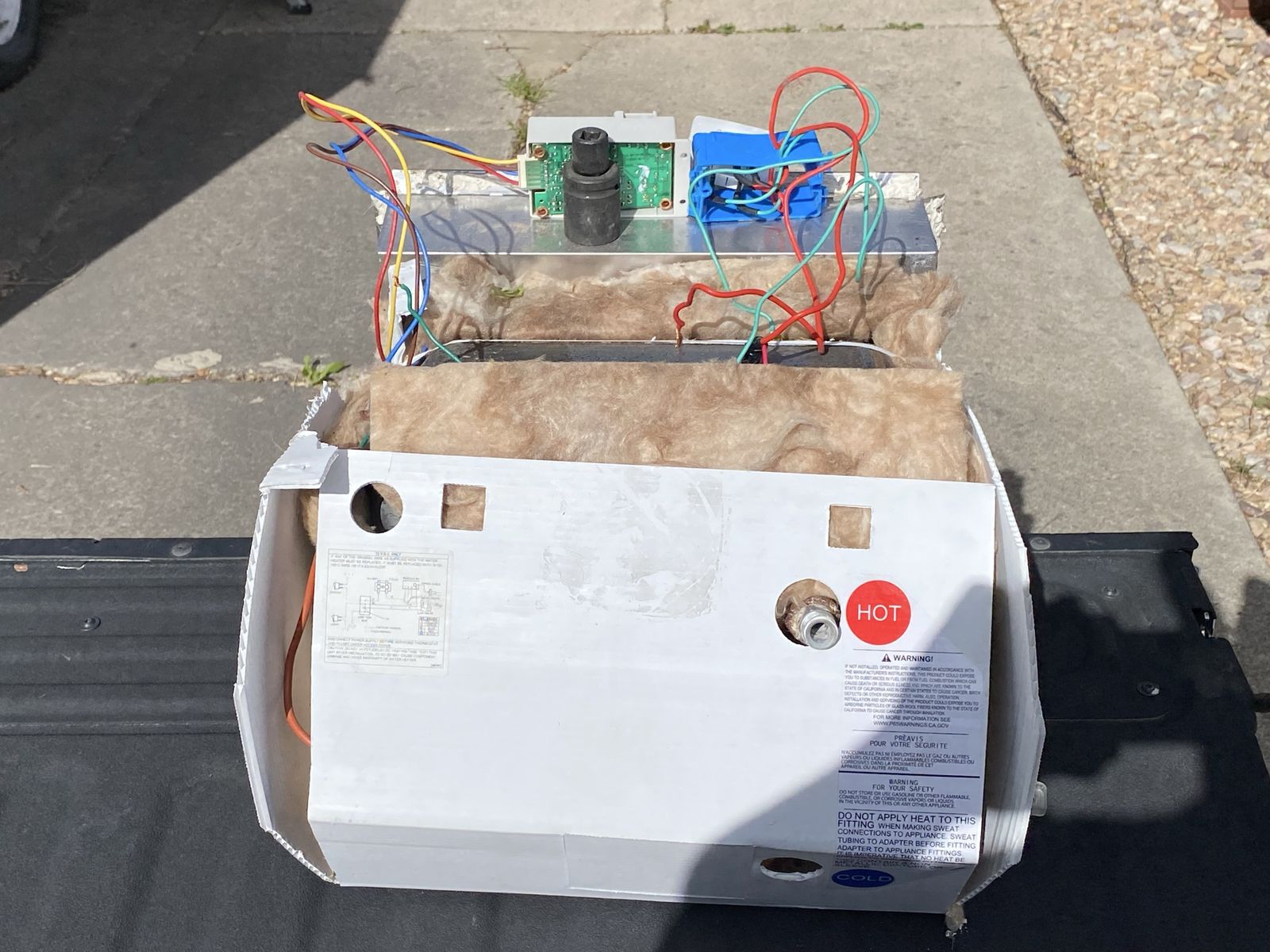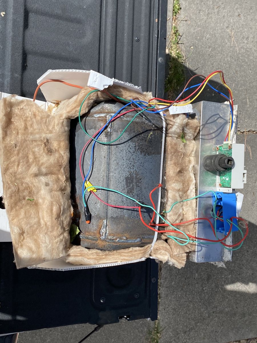 6 gallon water heater. Not sure of manufacture, but it’s only been used a few times over two years. It was installed by Stewart's RV, and I replaced it with a tankless heater.