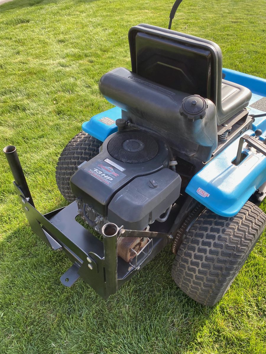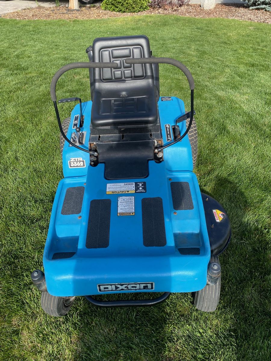 Venmo42” Dixon Zero Turn riding lawn mower with bagger and with snow plow & Chains. Used so little that the stickers are still attached. This has low hours and runs like new. This is super fun to operate and you won’t have any trouble convincing you kids to mow the lawn, in fact you will need to restrict their use. I hesitate to sell it because it is so much fun to run, but my lawn is so small it takes 15 min to cut with this mower so I decided to let it go to someone with a bigger lawn. It is a commercial mower with an industrial Briggs and Stratton Diamond I/C engine that has been used for residential and stored inside all of its life. It fits perfect in a shed and easy to move around. It has just been serviced and ready to go. Dixon is owned by Husqvarna. Asking $2200 OBO