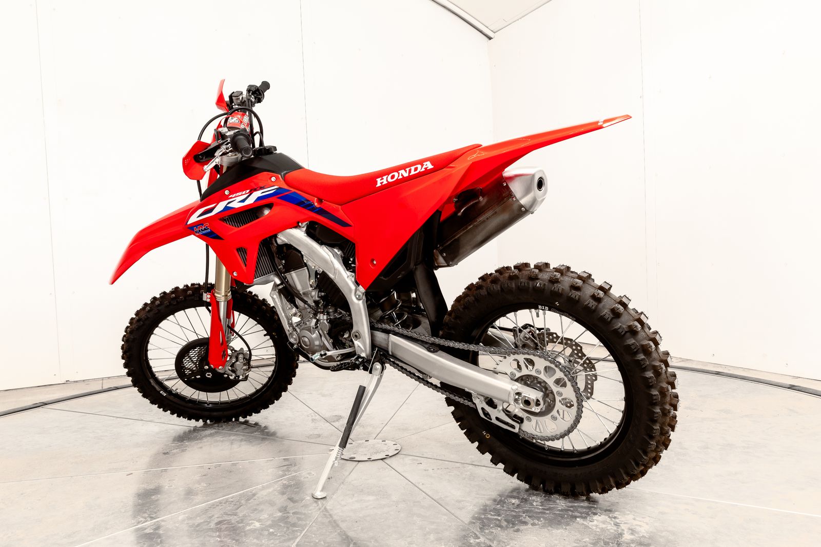 Handling is where the CRF450RX truly shines, thanks to a lightweight and responsive frame designed with direct input from the professional riders at Team Honda HRC. The narrow main spars and the revised steering stem work in perfect harmony with the triple clamps and front axle to provide incredible chassis rigidity. You will feel the difference immediately in the corners, as the bike offers a precise feel that allows you to point and shoot with total confidence. It is a chassis that feels like an extension of your own body, reacting to every input with lightning-fast responsiveness.