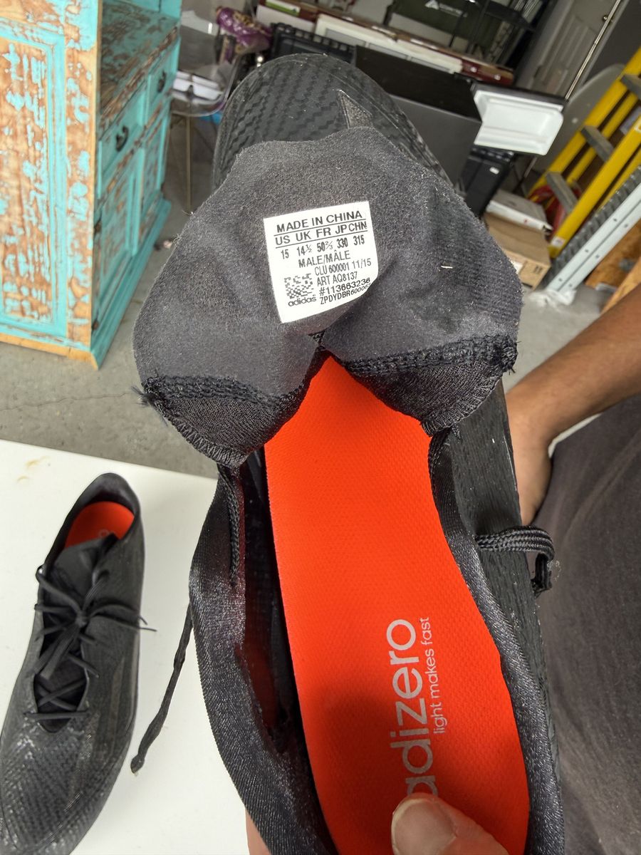 ZelleThis item is a pair of brand new size 15 adidas football cleats, never worn. Not sure why we have them, but they're great cleats and are perfect if you're looking for really big cleats.