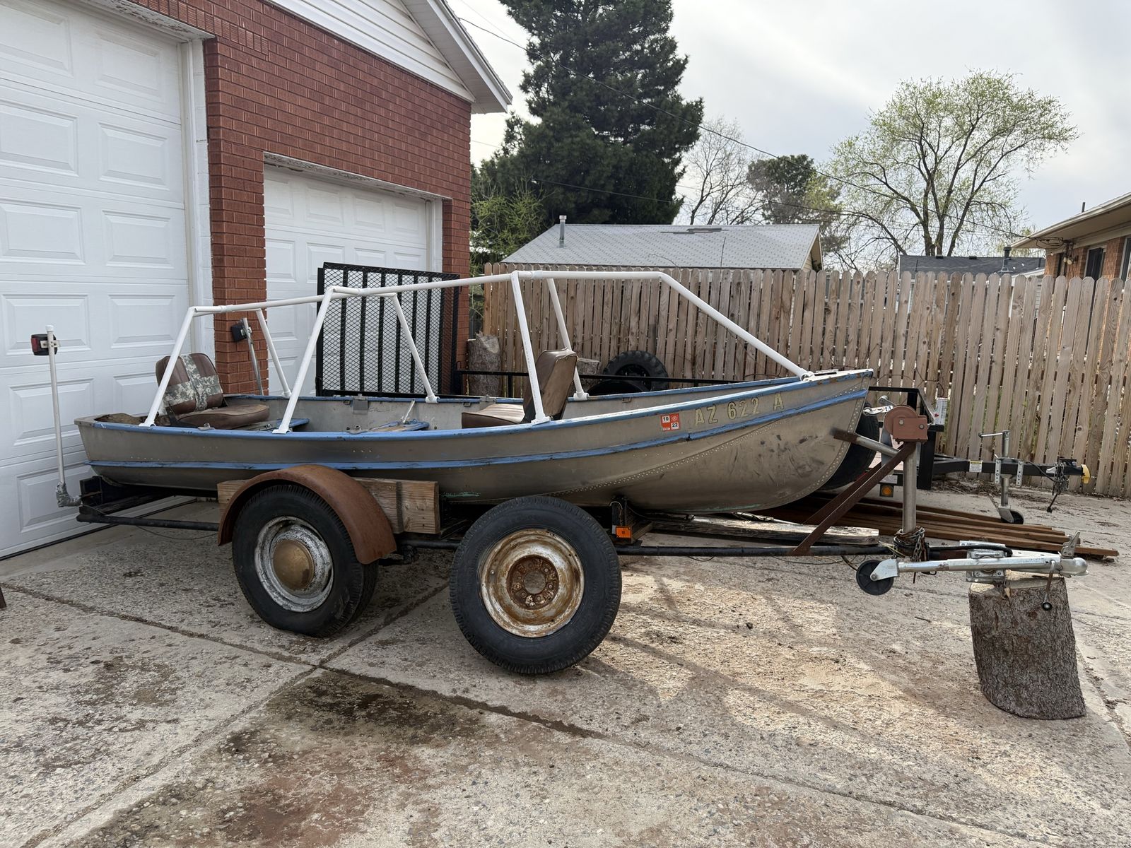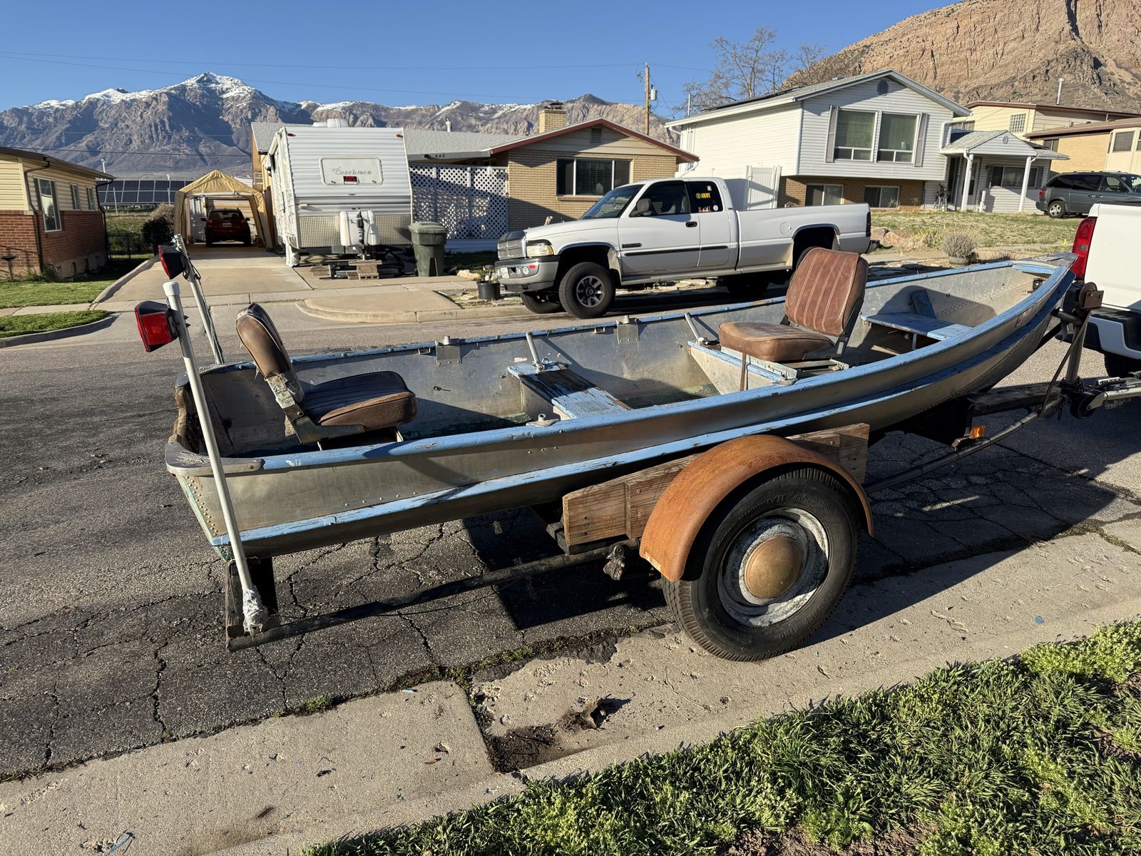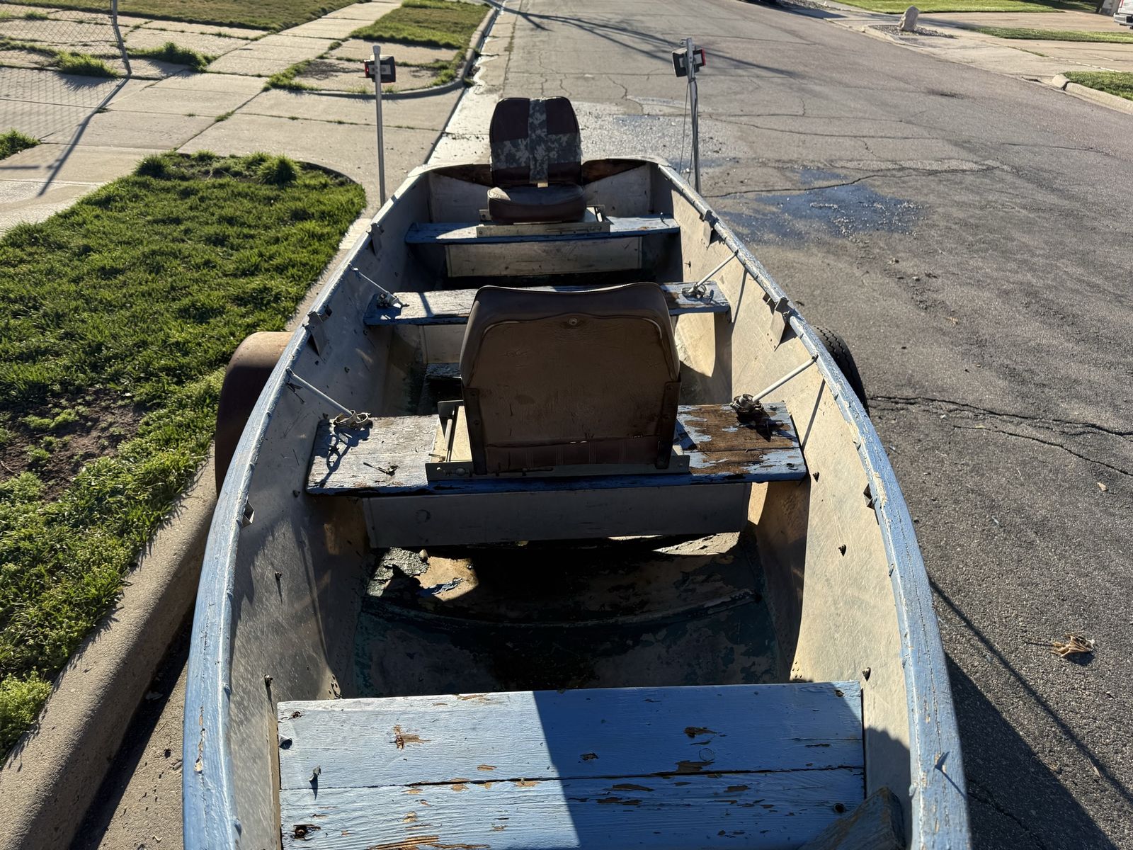 ZelleThe perfect small boat for someone that’s not afraid to invest a little time and money. It’s a 14’ Larson watercraft. I have a Minn Kota motor and battery(not sure if the battery is good). My wife and I have had this boat for years and just don’t use it enough. I’d rather let it go cheap then see it fall apart. The trailer could use a little help but you could take this combo to the lake today and fish no problem. The trailer also has a full size spare and all the tires were replaced a few years ago. The white pvc is for the cover. It helps to keep rain and snow out. Let me know if you have any questions and I will do my best to get them answered. 1500obo
