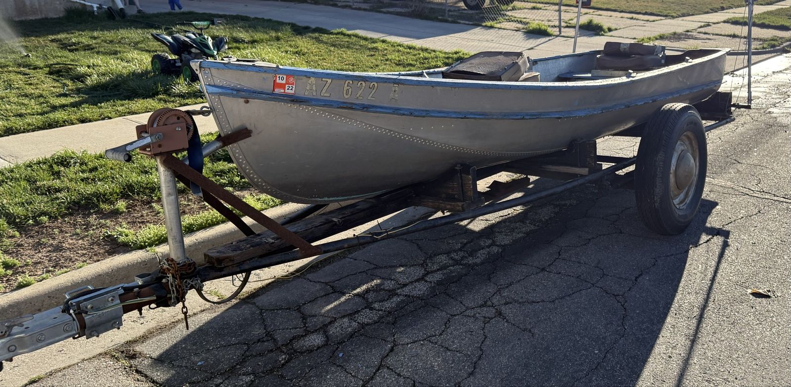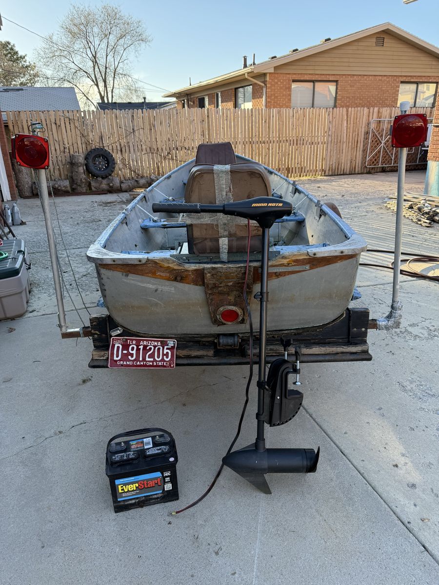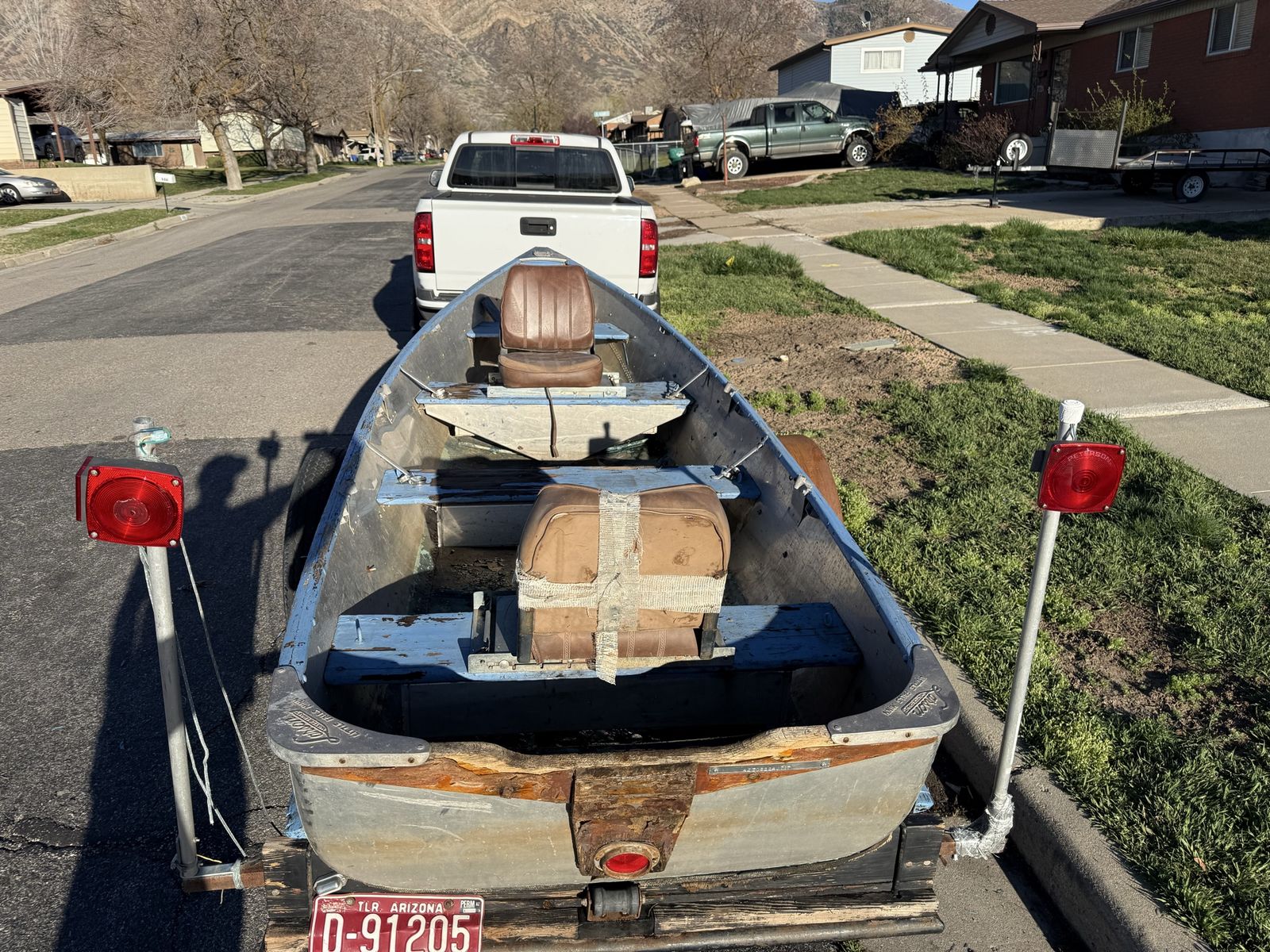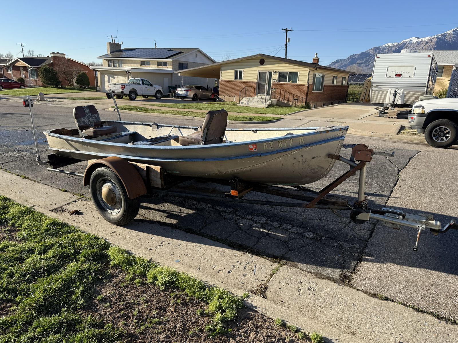 ZelleThe perfect small boat for someone that’s not afraid to invest a little time and money. It’s a 14’ Larson watercraft. I have a Minn Kota motor and battery(not sure if the battery is good). My wife and I have had this boat for years and just don’t use it enough. I’d rather let it go cheap then see it fall apart. The trailer could use a little help but you could take this combo to the lake today and fish no problem. The trailer also has a full size spare and all the tires were replaced a few years ago. The white pvc is for the cover. It helps to keep rain and snow out. Let me know if you have any questions and I will do my best to get them answered. 1500obo