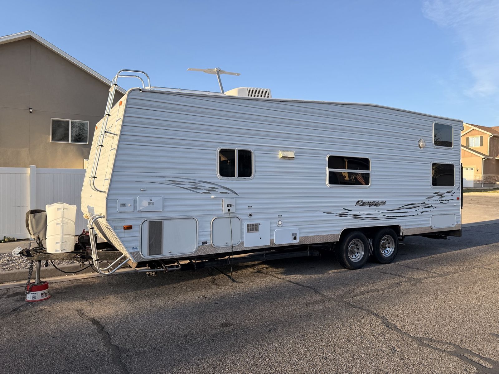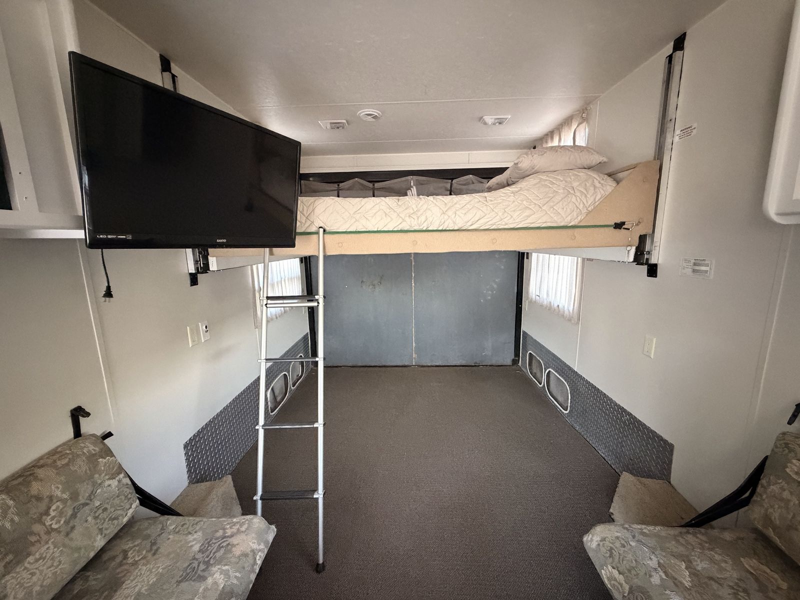 Need it gone, make me an offer 27 feet long, the garage area is 15 feet long, 79” wide and 75” tall. It will fit just about any 4 seat side-by-side. It’s got an onboard propane generator. The fresh water tank is 118 gallons. I just had a new awning put on and the roof resealed as well as all the vertical seams resealed. The interior has just been repainted. It has an electric tongue jack and oversized 9,000 lb stabilizing jacks. We just got back from an Easter trip and everything worked great. It’s wired for solar. Comes with 2 6V batteries and the weight distribution hitch. Tires were put on 3 years ago and still have plenty of life left in them. There is a TV and a CD player for watching movies. There is also a full sized spare under the rear end of the trailer. It’s been a great trailer for my family, there’s no leaks and it’s got a lot more life in it, it’s an older trailer but it is in pretty good shape given its age.