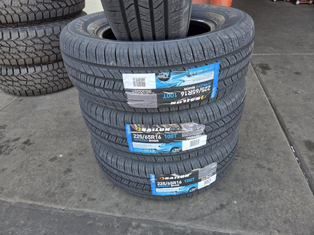 BRAND NEW SET OF SAILUN ATREZZO SH408 225/65R16 430 PLUS TAX MOUNT AND BALANCE INCLUDED 5 DOLLAR DISPOSAL FEE PER TIRE LEFT ANY QUESTIONS OR CONCERNS PLEASE LEAVE A MESSAGE OR COME VISIT US AT OLIVER TIRES 3010 WEST 500 SOUTH SALT LAKE CITY 84104 #11 MON-FRI 9AM-6PM WE CARRY LOTS OF NEW AND USED TIRES AND WHEELS