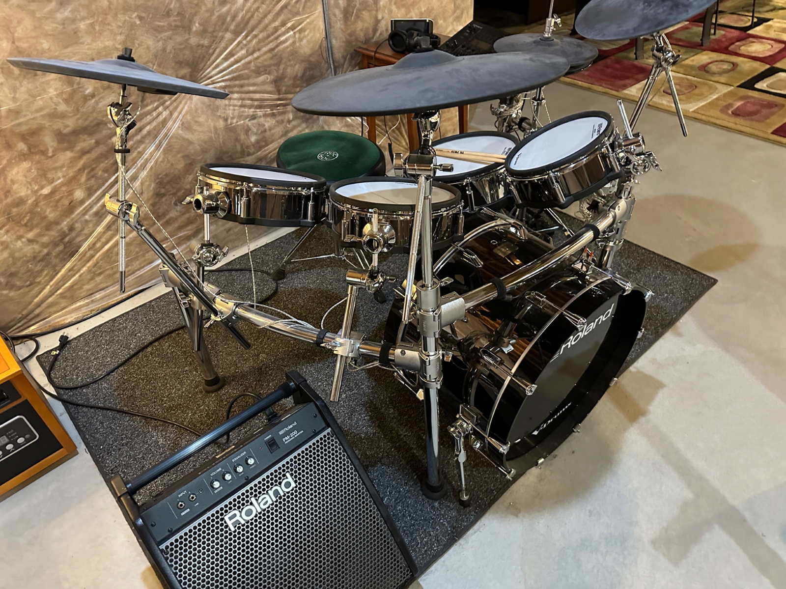 VenmoI am offering my Roland TD50 KV electronic drum kit, along with upgrades and additional musical equipment for sale. I bought this kit 9 years ago, but have used it very little. This was my fourth Roland electronic drum kit, and it is the best kit that I have owned without a doubt. I have put no more than 20 hours on this awesome kit. I’m just an aging drummer, and I am no longer interested in making music. You can tell by the pics that drums have barely been used. The heads are extremely clean and the TD50 sound module delivers a ton more features than I would have ever used. In addition to the TD50, the package includes: