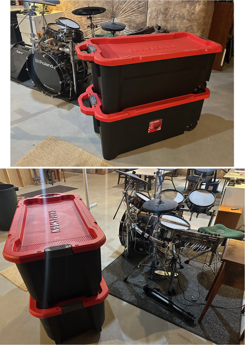 · Two large (foam packed) plastic cases that will hold the TD50 (not base drum).
