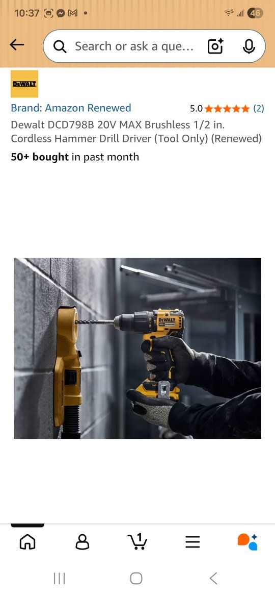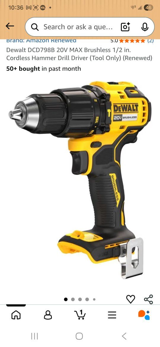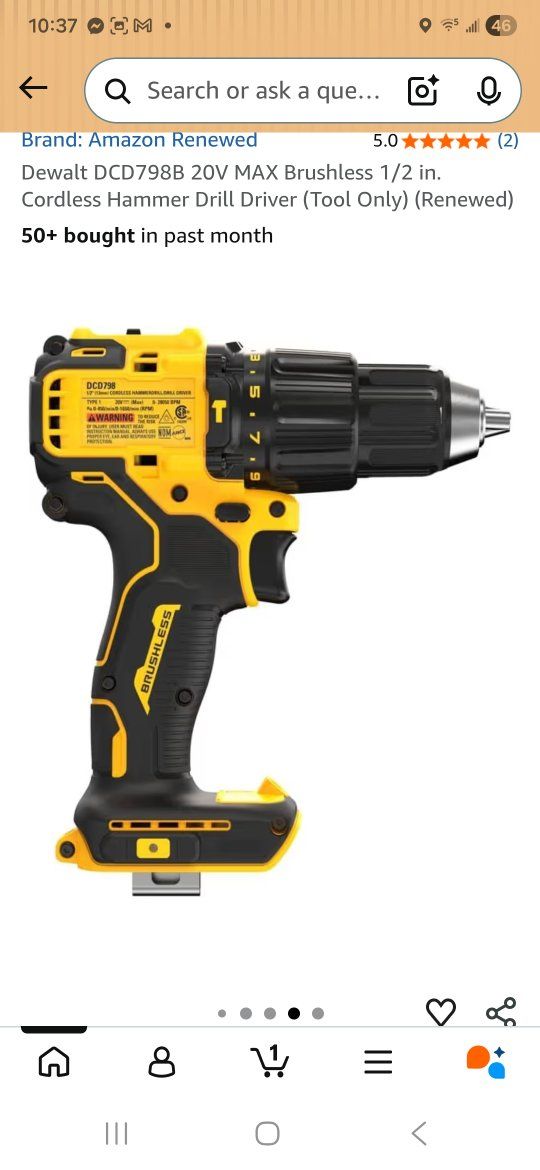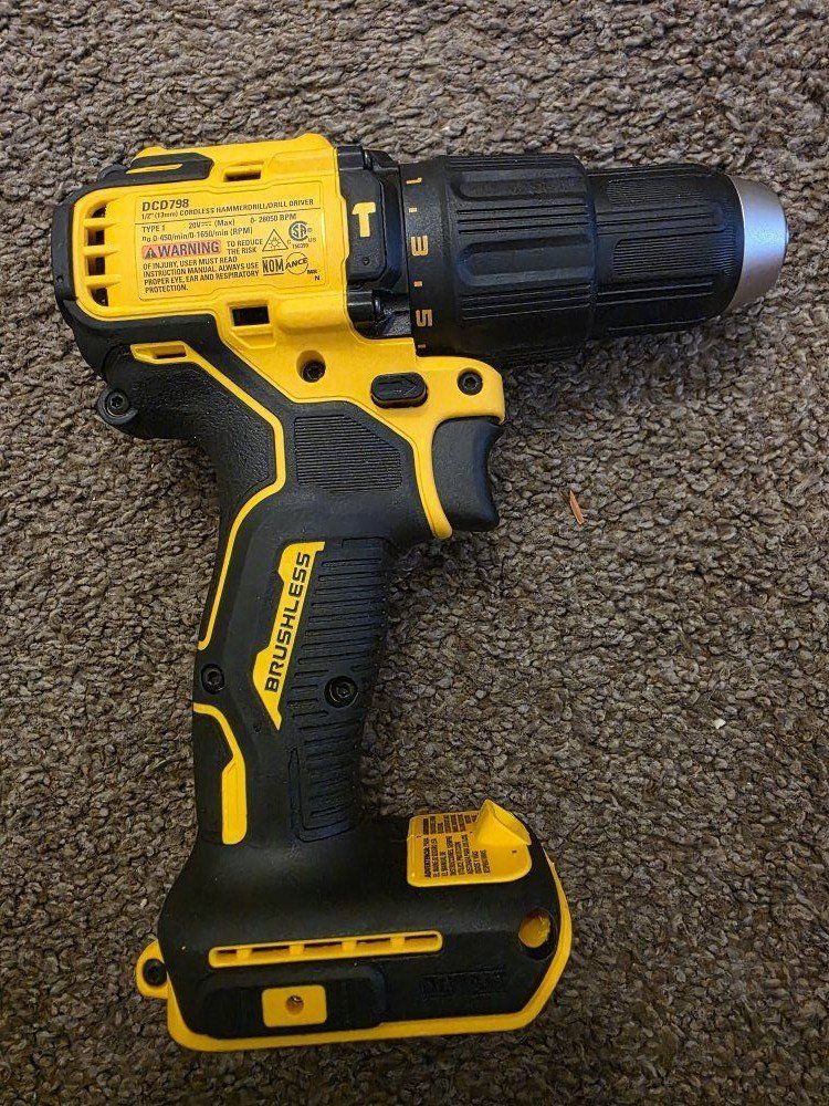 ZelleNew Dewalt 20V MAX Brushless 1/2in. Hammer Drill. Model Number DCD798B.