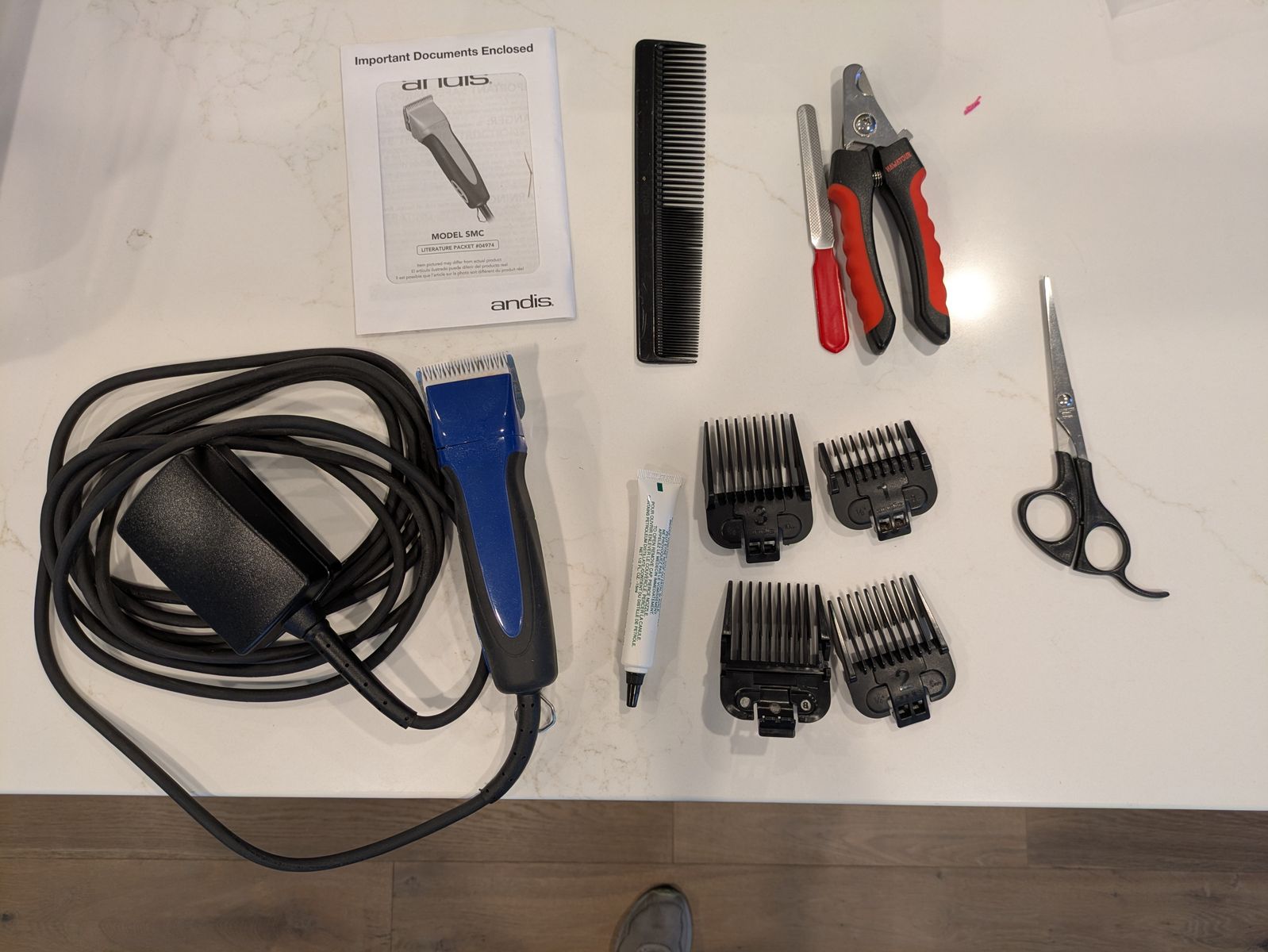 VenmoGreat dog clippers with many sizes for different lengths of hair. Comes with clippers, blades, manual, and oil. Also throwing in scissors, comb, nail file, and nail clippers that we don’t need anymore. Great price for great clippers!