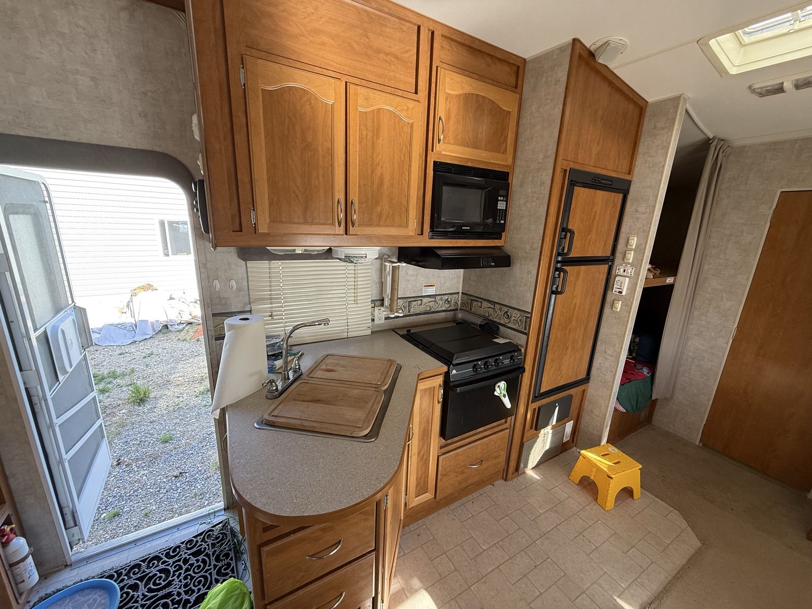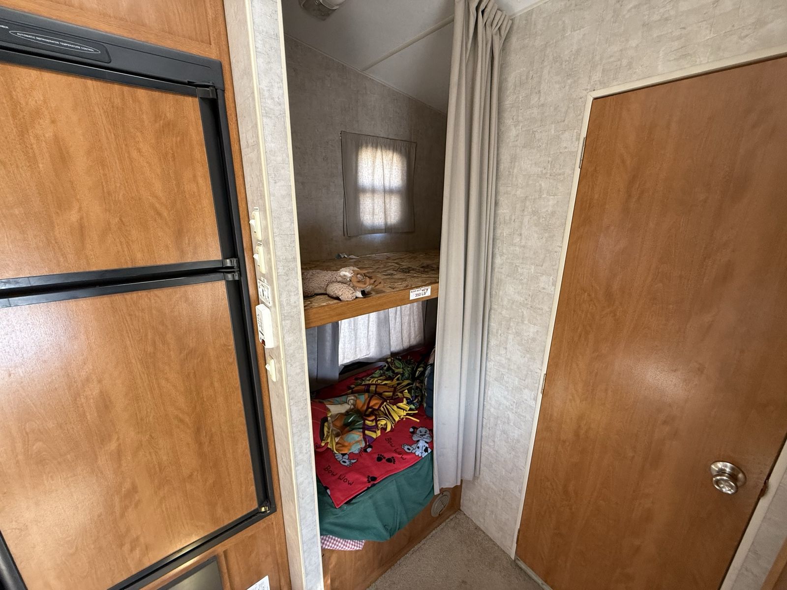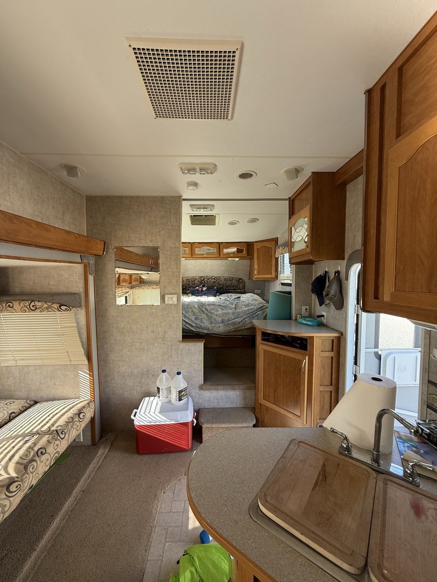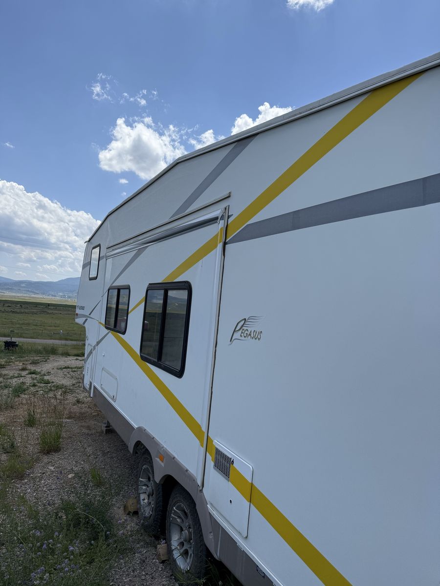Nice fifth wheel bunkhouse camper. We have owned it for 12 years. We have done several updates. New roof and membrane about five years ago. Also new a/c at same time. New 10 ply tires 300 miles ago. Has heated tanks but we have never used them. Good awning. It also has a 2 ft deep storage garage in back end. Great for camping gear. Also has hitch and pug at rear for pulling doubles. It has a gooseneck adapter on hitch. Jackknife couch and bunks in back. Everything else you can see in pics. Been a great trailer. Title in hand. Price is OBO.