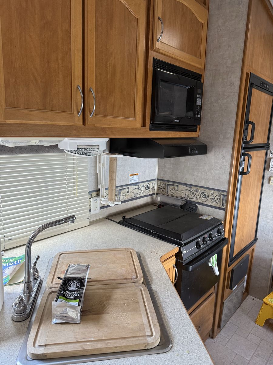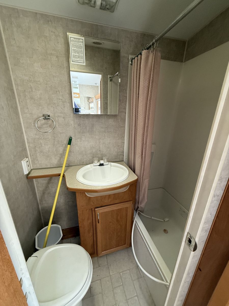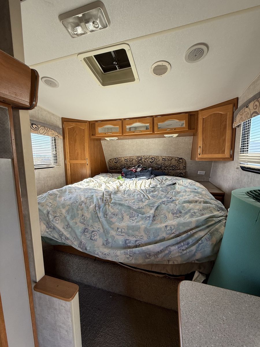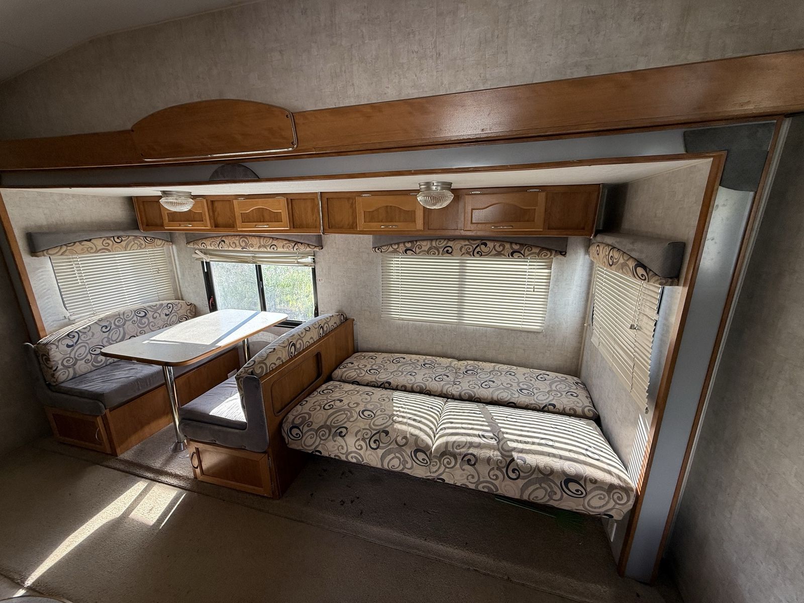 Nice fifth wheel bunkhouse camper. We have owned it for 12 years. We have done several updates. New roof and membrane about five years ago. Also new a/c at same time. New 10 ply tires 300 miles ago. Has heated tanks but we have never used them. Good awning. It also has a 2 ft deep storage garage in back end. Great for camping gear. Also has hitch and pug at rear for pulling doubles. It has a gooseneck adapter on hitch. Jackknife couch and bunks in back. Everything else you can see in pics. Been a great trailer. Title in hand. Price is OBO.