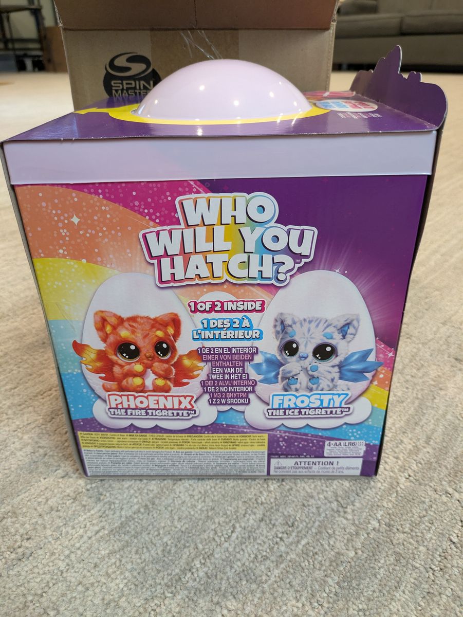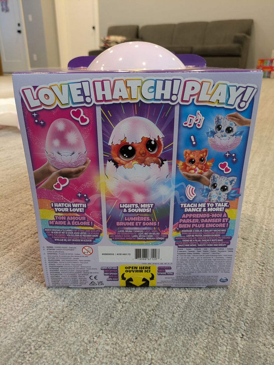 VenmoHatchimals Alive, Mystery Hatch Tigrette, Surprise Interactive Toy & Egg with Mist, Lights & Sounds. Which one will you hatch?! Discover 1 of 2 characters in the Hatchimals big egg with unique sounds & lights. Each has glitter eyes, a patterned body & metallic or iridescent wings. So many ways to play: Feed, pet, tickle, teach your friend to talk, play peek-a-boo & more. He even flutters his wings, rocks & dances, too. Hatchimals Alive Mystery Hatch surprise eggs are here. With 100+ sounds & reactions, these Hatchimals need your love & care to bring them to life. Such a fun toy for any girl or boy!