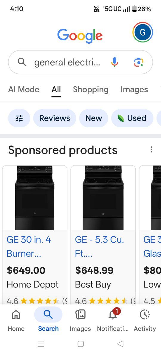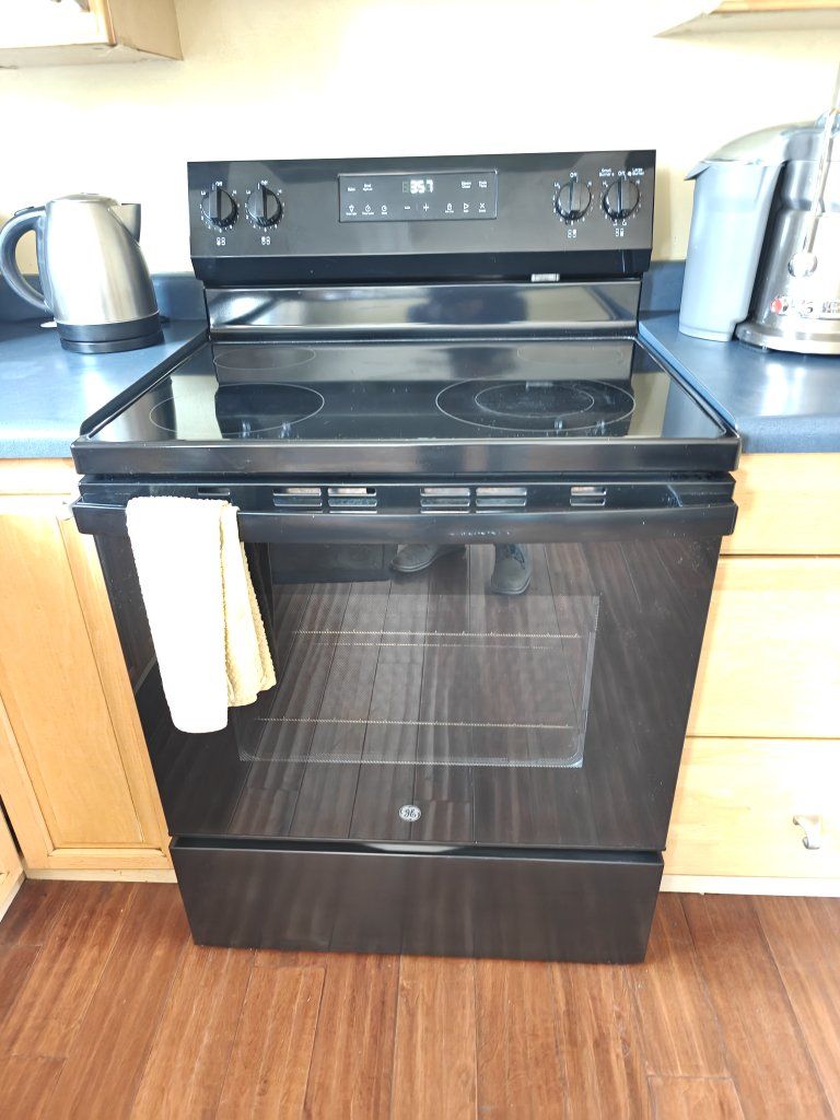 Nice and Clean General Electric Range stove. 5.3 cu ft. Black Glass- Ceramic Cook Top.\