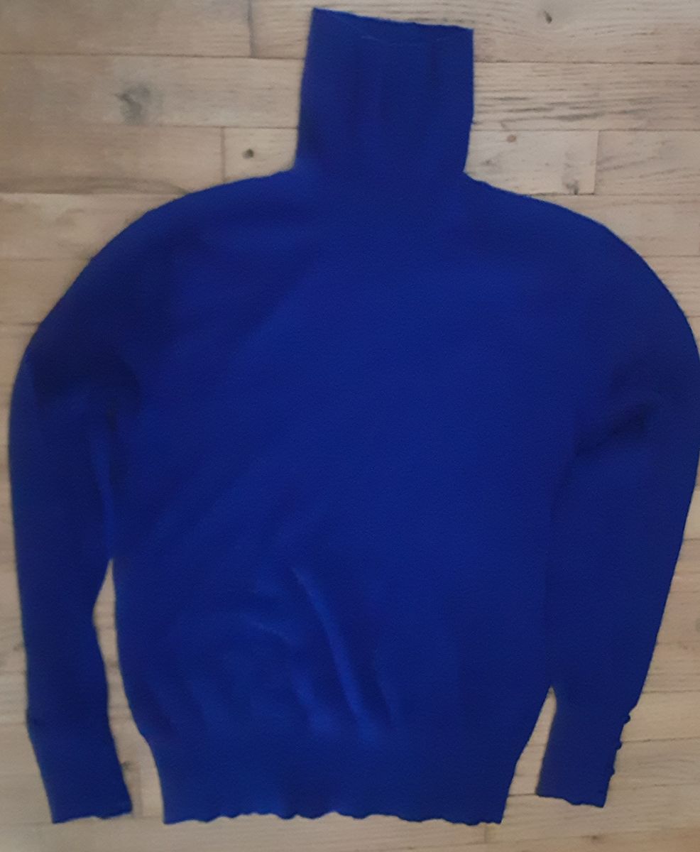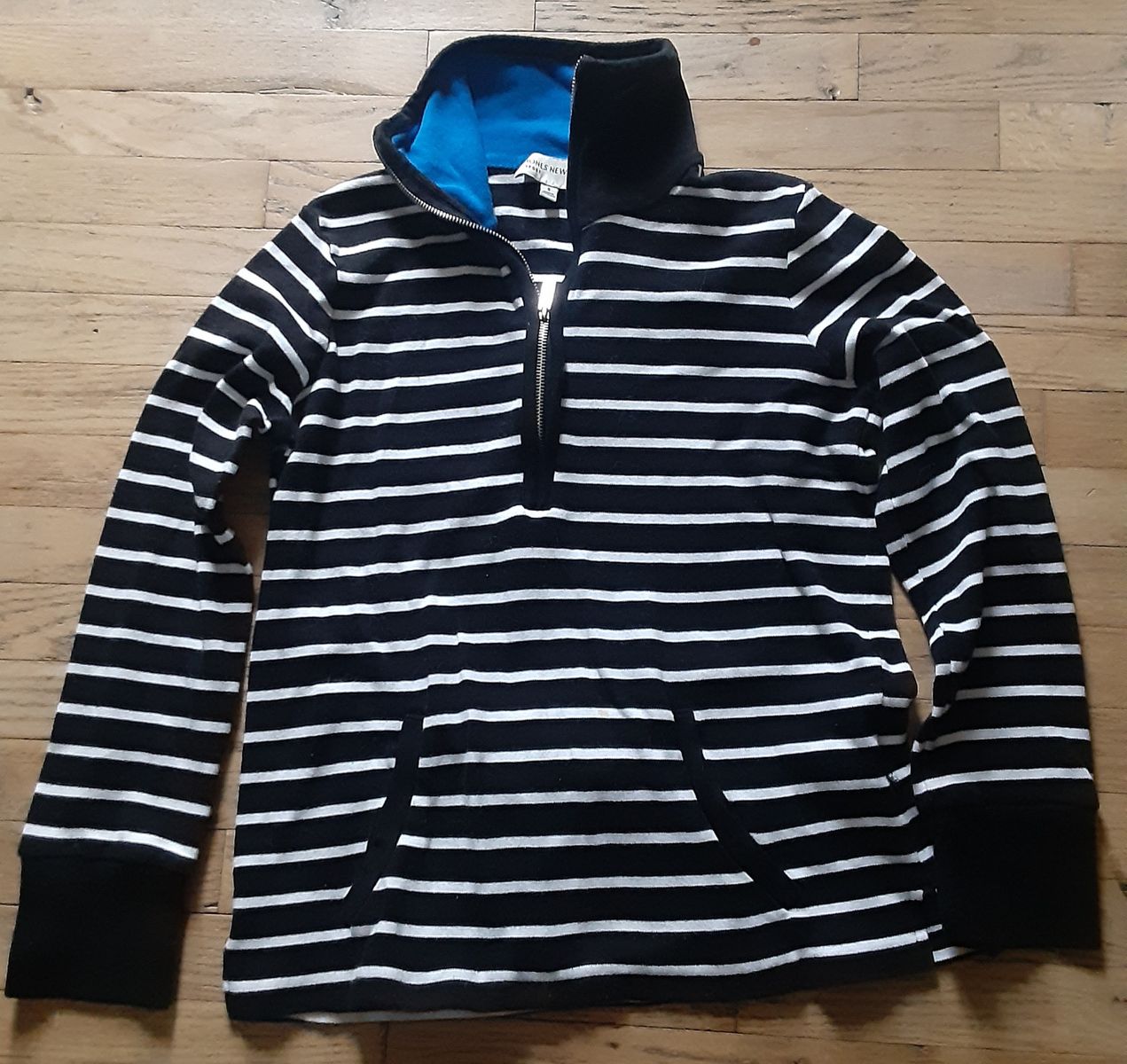 2 Small: 1 black & white striped with zipper at neck, long sleeve & 1 Blue turtle neck with decorative buttons on the wrists