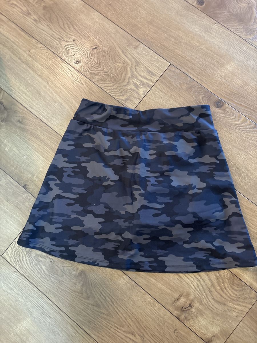 Quick dry skirt, size 10-12, cute camo print, Runway brand. Barely used. Built in shorts w same camo pattern. Super cute and practical skirt!
