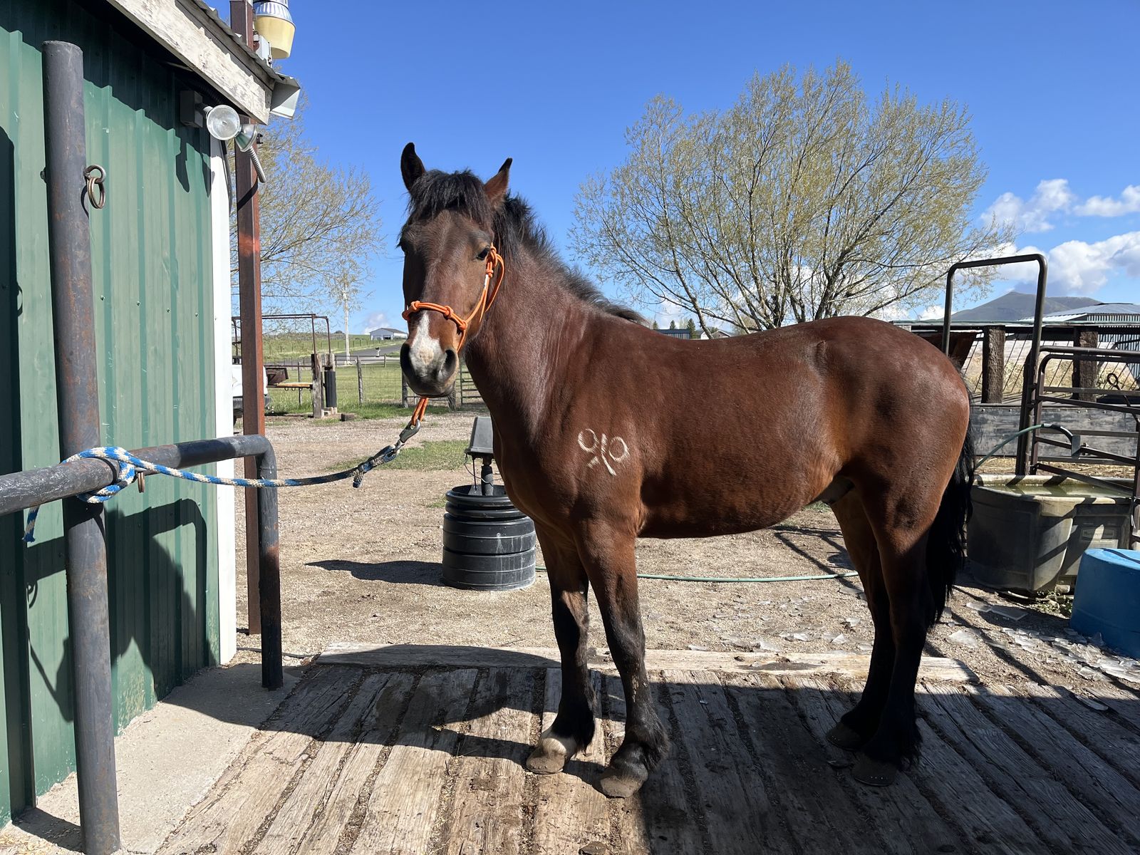 This colt is almost 14 hands and has been ridden at least 40 times. He flexes good and has a good stop and back. He has been shod but has lost a front. He has been excellent to catch but everyday use has gotten him a little offish, he can buck if not warmed up. Due to some health issues I can not throw on a saddle so I don't have pictures in the saddle.He is branded. I do have a few more videos I can send to you if you want. $2500 cash. I would prefer phone calls over texts