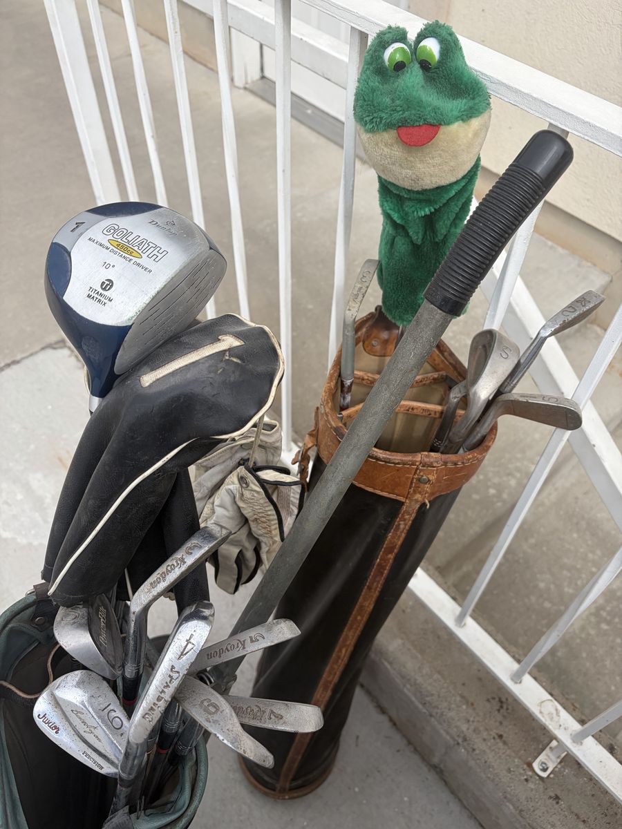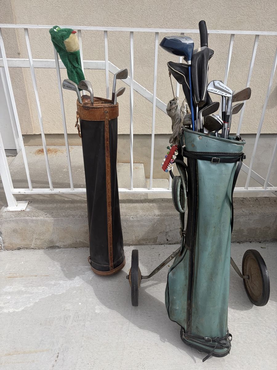 2 sets of golf clubs and ball’s