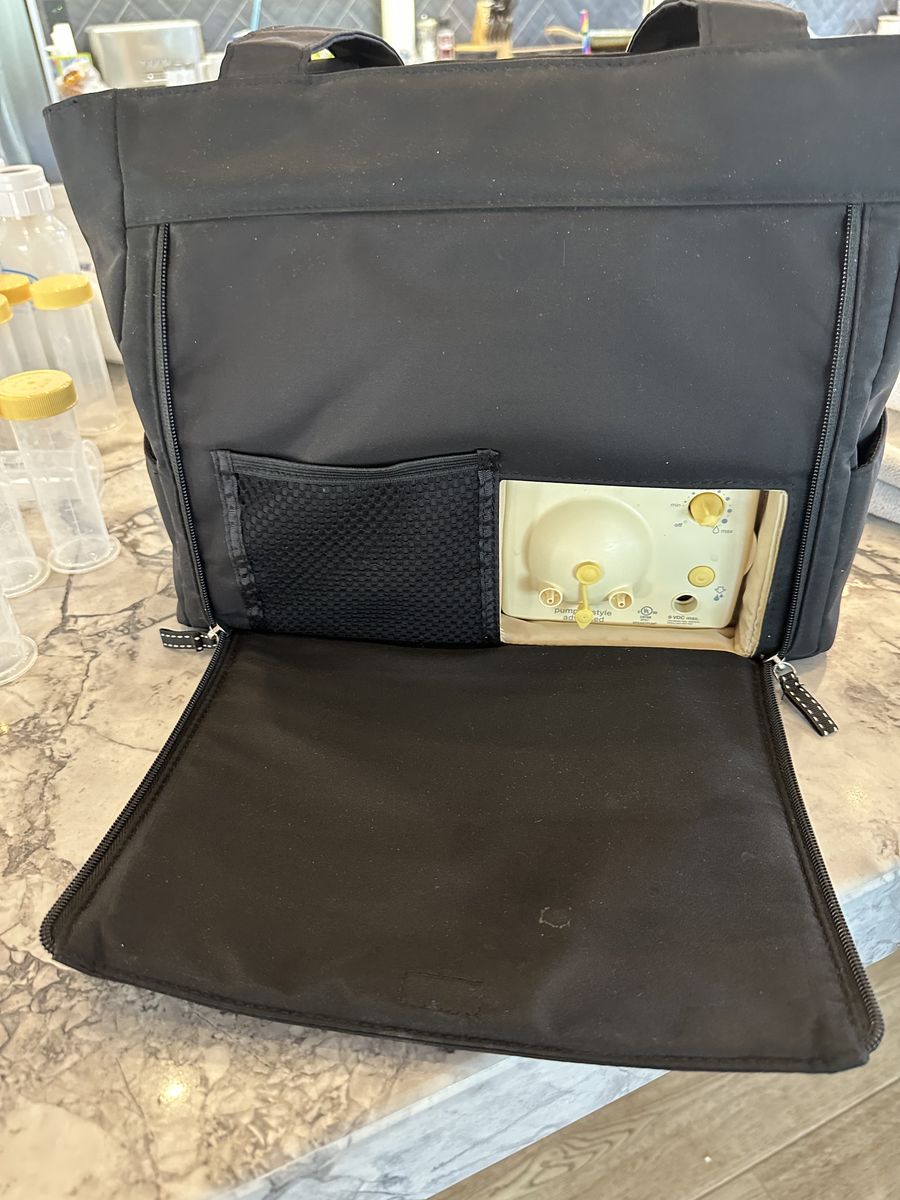 VenmoMedela breast pump in travel bag with cooler and four bottles plus plug.