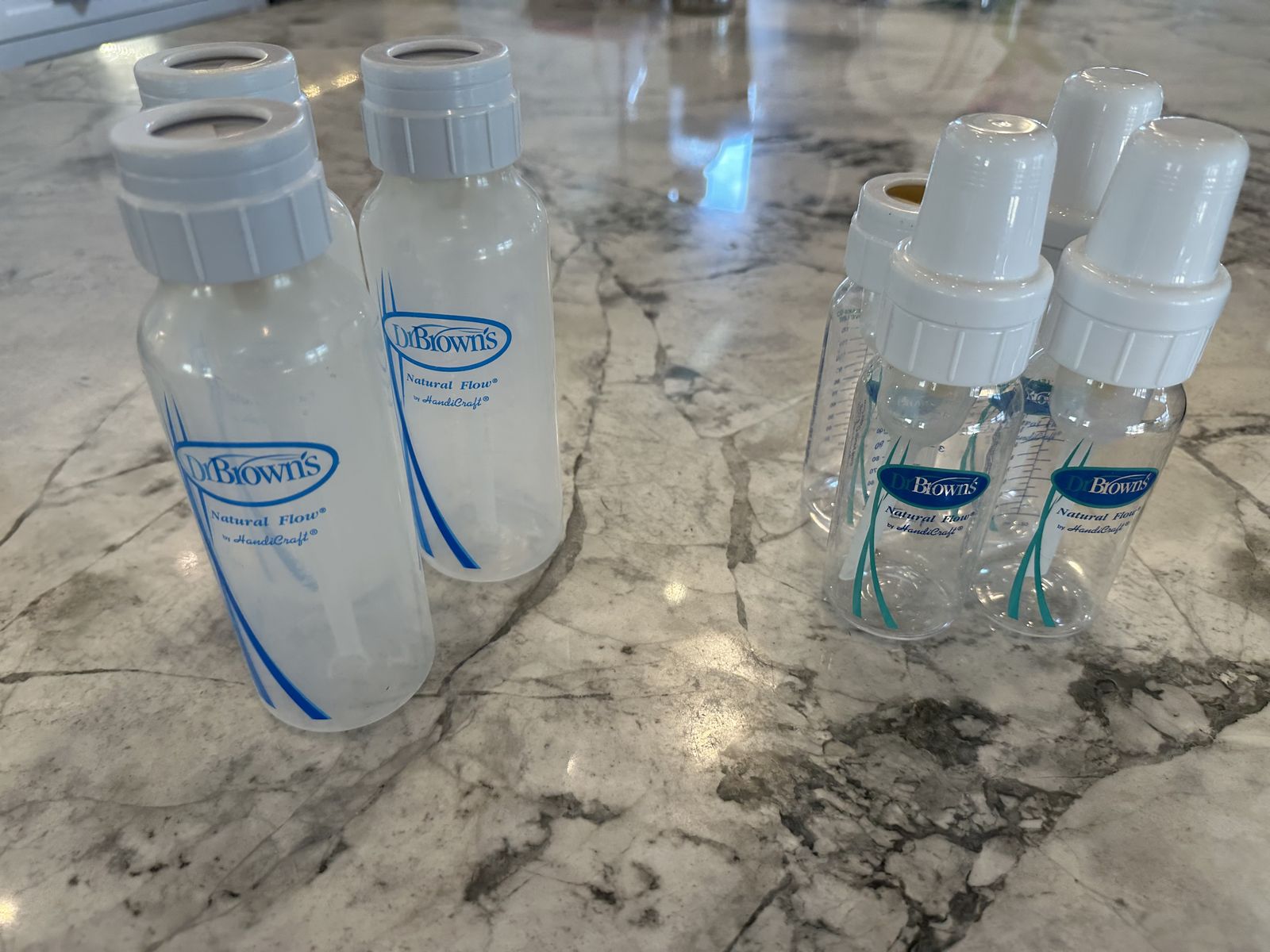 Seven Dr. Brown's bottles