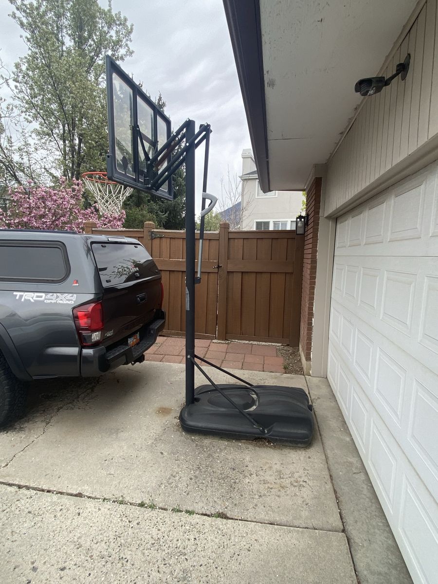VenmoPortable basketball hoop w/adjustable height. Base is filled with sand.