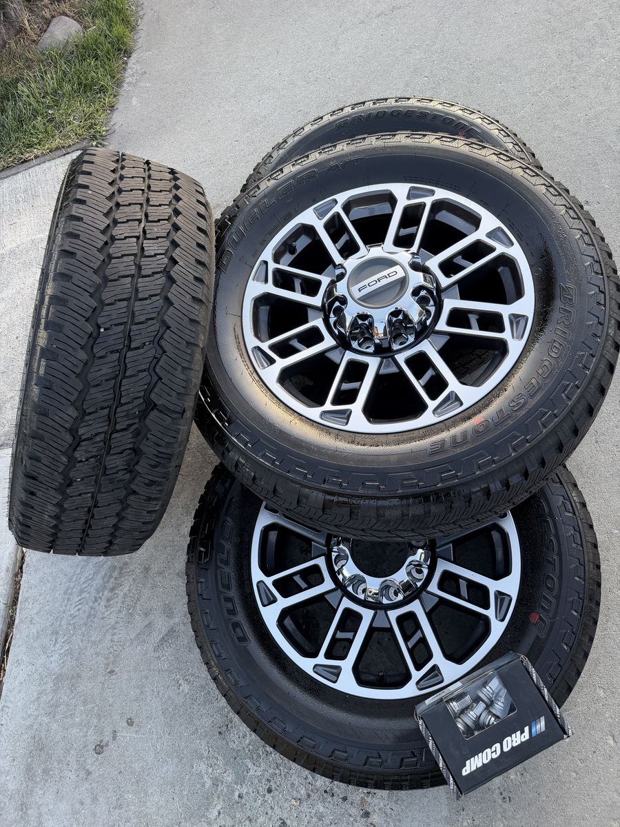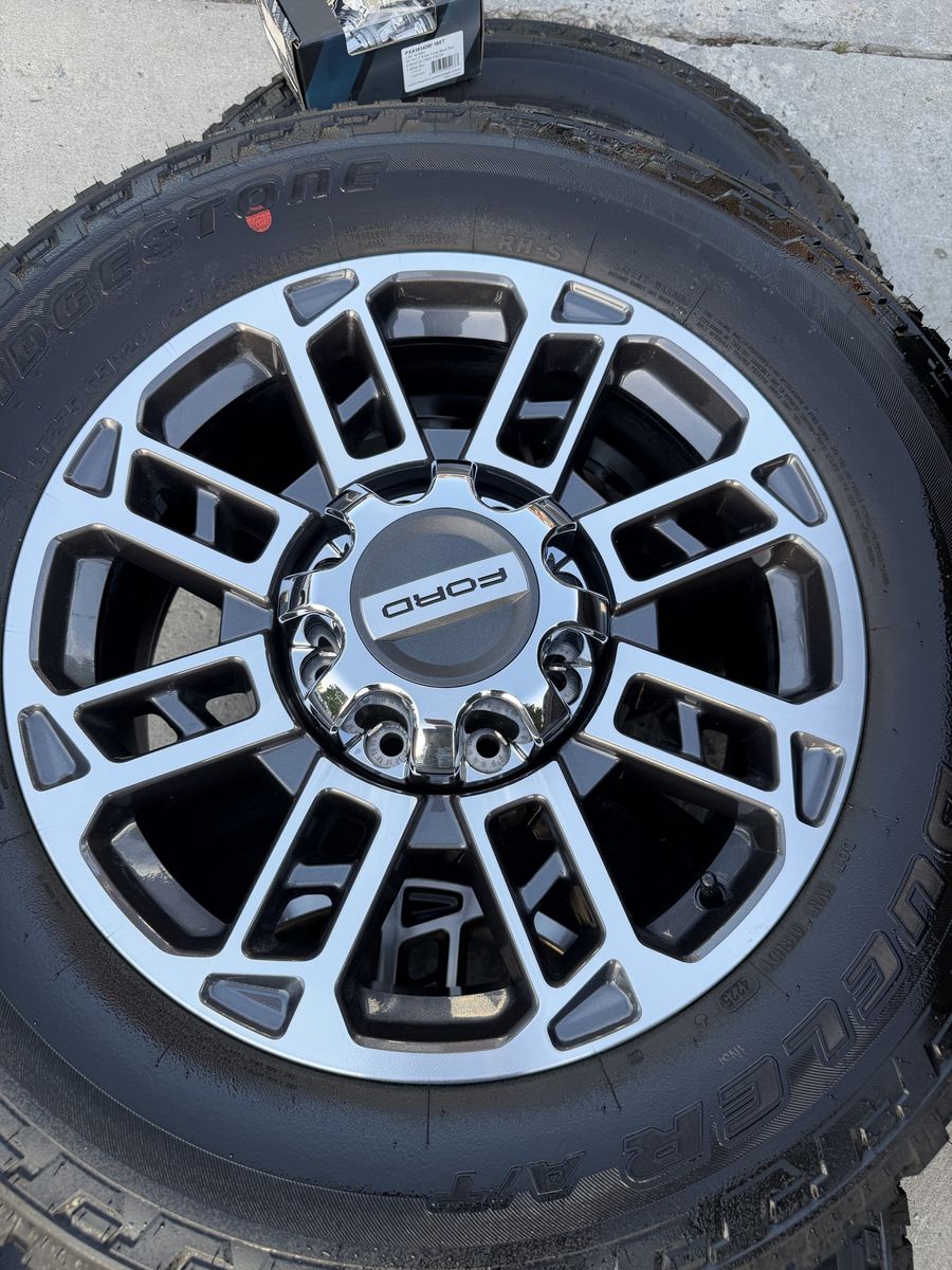 Selling my brand New ford f250 platinum plus wheels and tires only 20 miles center caps and lug nuts included tires are 275/65r20 Bridgestone dueler A/T load range E 10ply