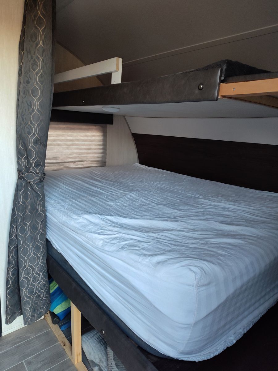 VenmoThis has been a great Rv for our family. Sleeps 7 comfortably. Everything works great. Light weight to pull but with the pull out has plenty of space. We did a few modification. We changed the rv size queen to fit an actual Queen sized bed, We reinforced the bunk and added a rail, and moved part of the under storage to be accessible from inside the trailer. We kept all the original pieces so it could be changed back if desired. Has new tires within the past year. Small cosmetic damage at the front. Natalie 801-671-1482