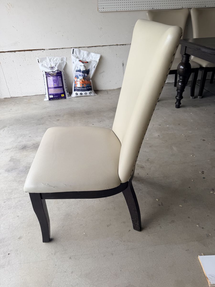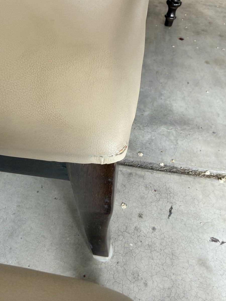 VenmoRC Willey used chairs and bench. Bench did have a crack in the center- as shown- but we braced it on the underside of the bench. 2 of the four chairs are showing some slight wearing- as shown. Faux leather in good shape. Smoke free home.