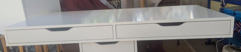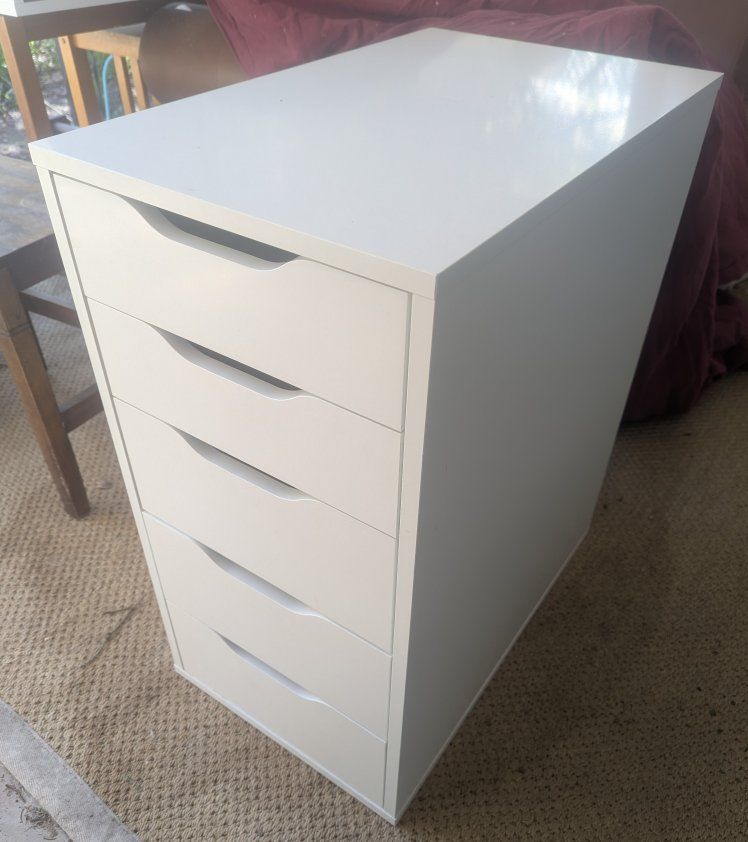 PayPalIkea Alex desk drawers. Already assembled. I used the desktop on top of the drawers/cabinet so there are no legs. Pieces have been very gently used. See photos for dimensions and current prices for new. Small scratch on top of desk, cabinet inner shelf front scratches. Near Brickyard area.